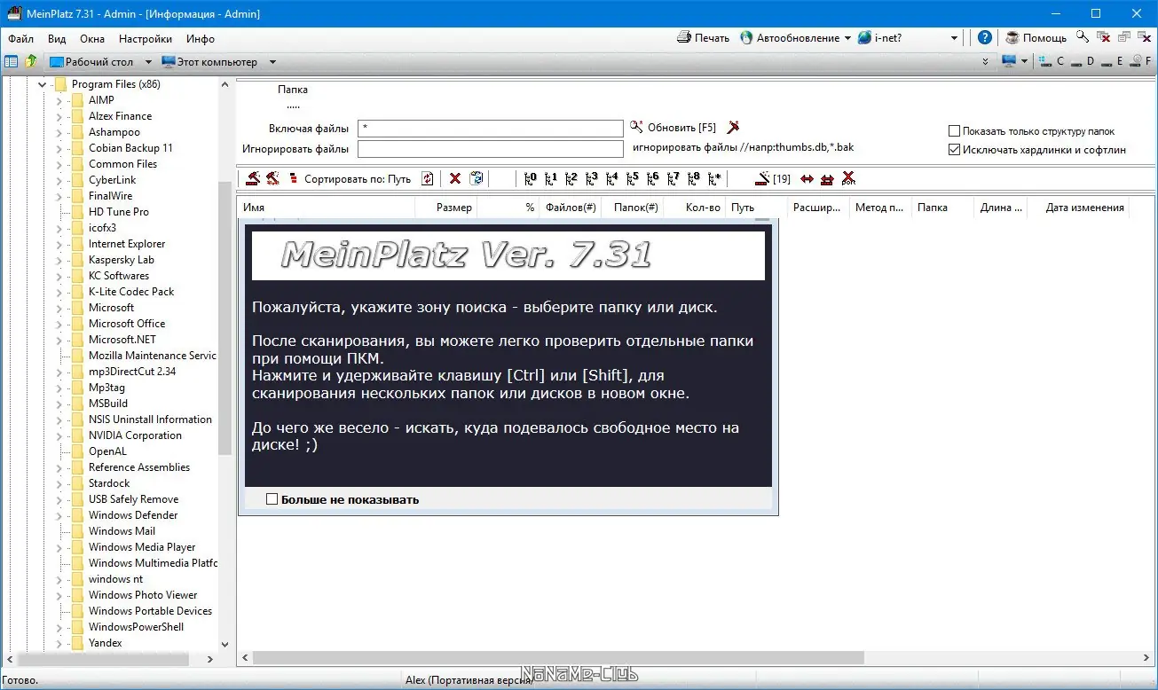 Предлагая простой и понятный интерфейс, MeinPlatz позволяет пользователям провести сканирование жесткого диска с анализом на процентной основе. Группировка данных по папкам, типам файлов, размеру или дате дает возможность точно определить «проблемные» области диска. Функционал включает сохранение результатов в различные форматы, а также печать — все для удобства обработки информации. Маленькая и быстрая утилита, разработанная Nenad Hrg, подходит как для личного использования, так и для профессиональных задач по оптимизации дискового пространства.