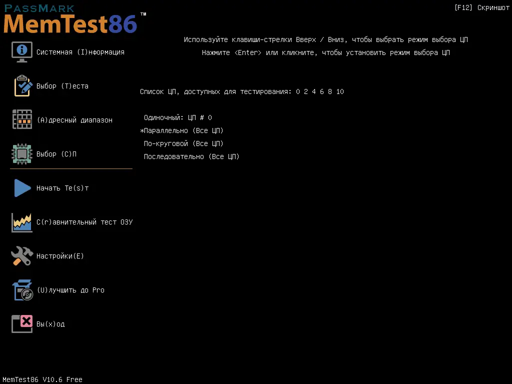 - 13 различных алгоритмов тестирования для комплексного анализа памяти.