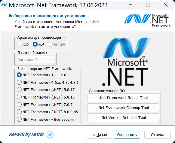 - Инструменты для диагностики и устранения проблем, такие как .NET Version Detector, Cleanup Tool и Repair Tool