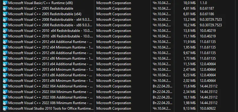 Microsoft Visual C++ Runtimes — это набор распространяемых пакетов, обеспечивающих установку компонентов среды выполнения библиотек Visual C++, необходимых для запуска приложений, созданных с помощью среды программирования Visual Studio.