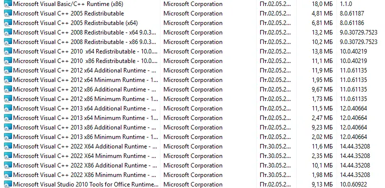 - Установка актуальных версий компонентов среды выполнения Visual C++ для Windows 7, 8.1, 10 и 11.