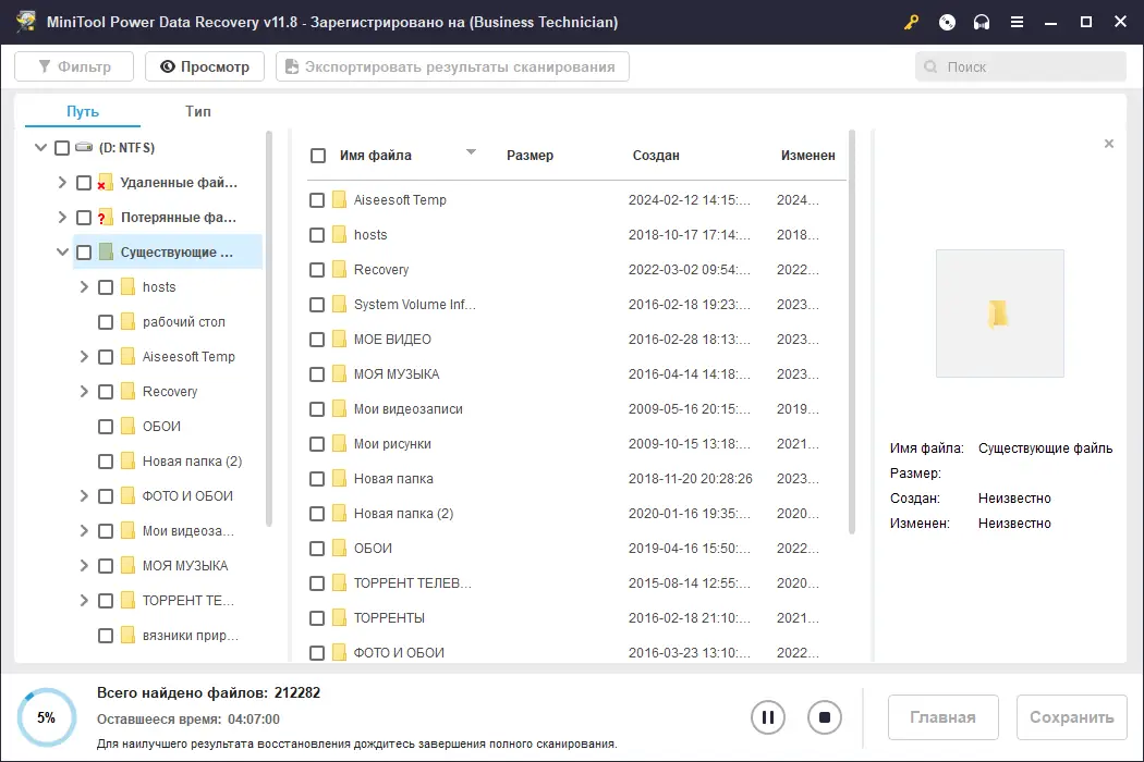 MiniTool Power Data Recovery — это надежный инструмент, предназначенный для восстановления данных с наиболее распространенных типов карт памяти, жестких дисков, флеш-накопителей и других съемных носителей. Он обладает компактным размером, что позволяет легко использовать его в портативном формате или установить на компьютер без особых трудностей. Основной функционал включает восстановление файлов после случайного удаления, форматирования, повреждения FAT, разбиения диска и физического повреждения устройства. Поддерживаются все основные файловые системы, такие как NTFS, FAT 12, FAT 16 и FAT 32, что делает программу универсальной для работы с разными носителями информации.