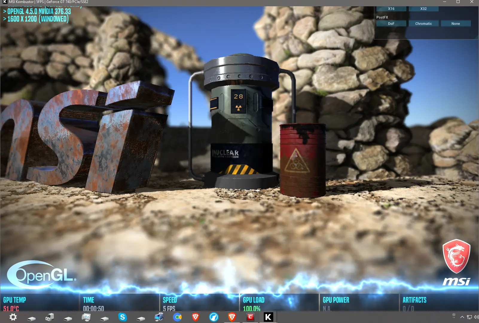 - Запустить MSI Kombustor и приступить к выполнению тестов.