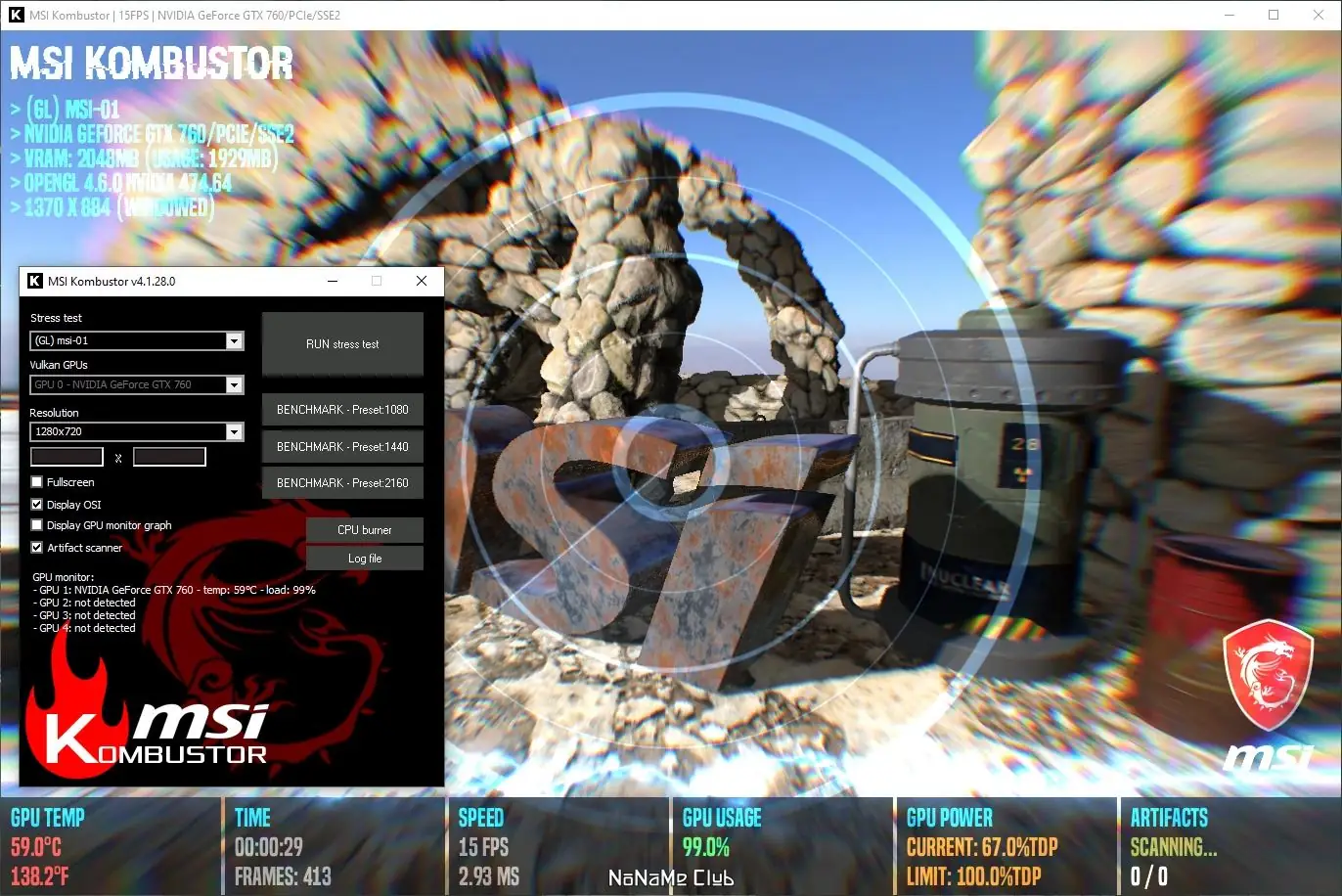 MSI Kombustor — бесплатное специализированное приложение для тестирования и оценки производительности видеокарт различного уровня. Разработанное командой Geeks3D совместно с компанией MSI, оно основано на известном приложении FurMark и предназначено для проведения стресс-тестов графического процессора с целью выявления его максимально возможных характеристик и стабильности. Инструмент поддерживает современные графические технологии OpenGL и Vulkan, предоставляя пользователям широкий набор тестов, включая MSI PhysX, TessMark, PBR-Donut и другие, чтобы можно было как проверить производительность, так и сравнить видеокарты по эталонным параметрам.