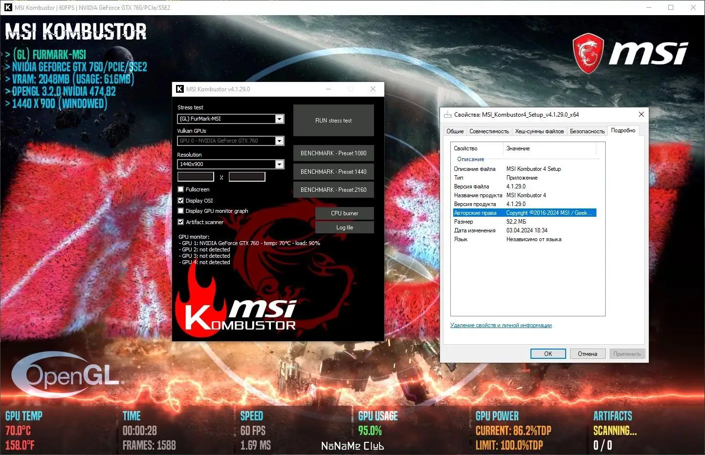 MSI Kombustor — это мощный и бесплатный инструмент для компьютерных энтузиастов и специалистов по тестированию видеокарт. Он позволяет быстро и удобно провести комплексную диагностику графического процессора и видеопамяти.
