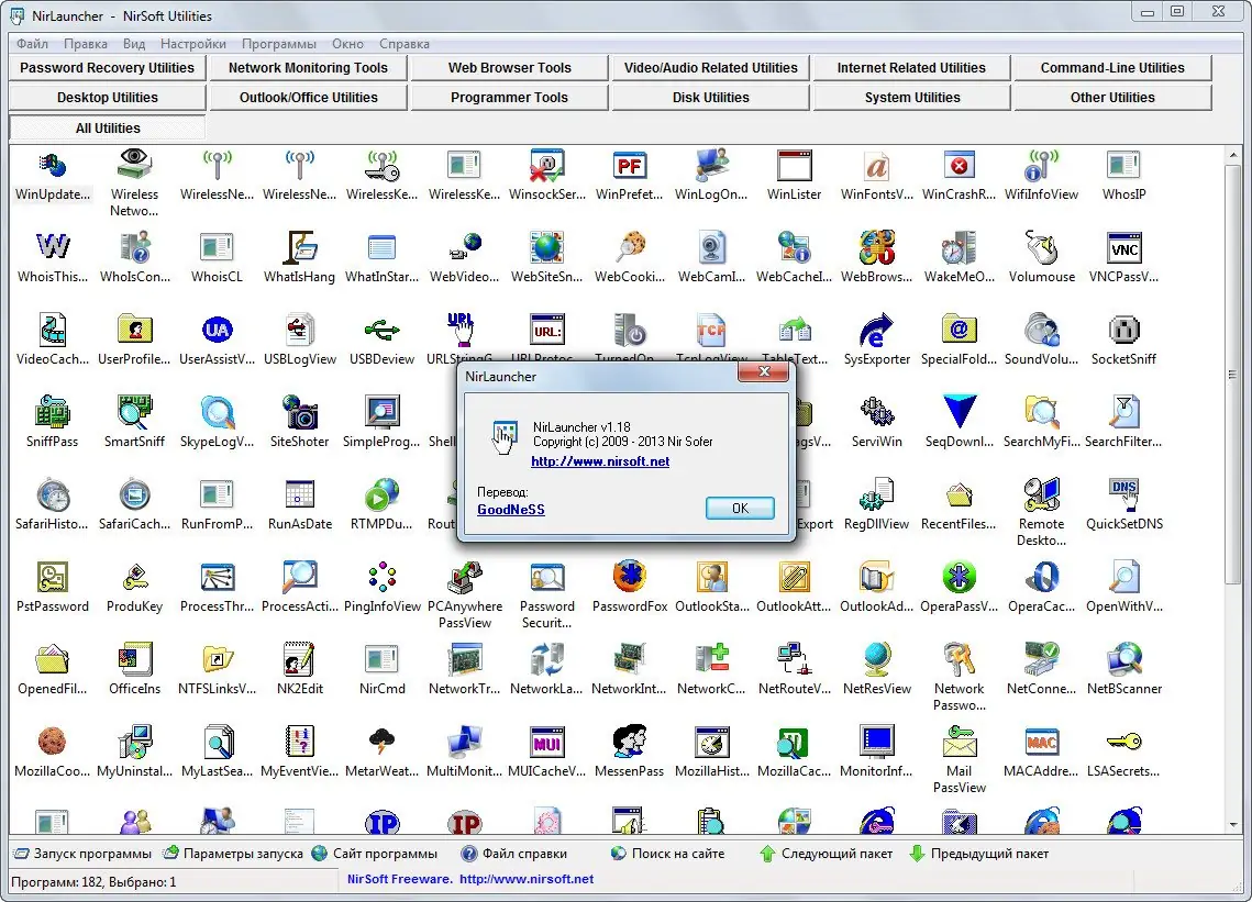 Все утилиты внутри пакета являются полностью свободным программным обеспечением и не содержат вредоносных элементов, таких как Spyware, Adware или Malware, что подтверждается заявлением разработчика. При запуске NirLauncher автоматически подбираются утилиты для систем с разрядностью x86 или x64, обеспечивая комфортную работу на любых современных системах. Внутри пакета есть инструменты для просмотра и извлечения cookies, кэша, восстановления потерянных паролей, контроля сетевого трафика и многое другое.