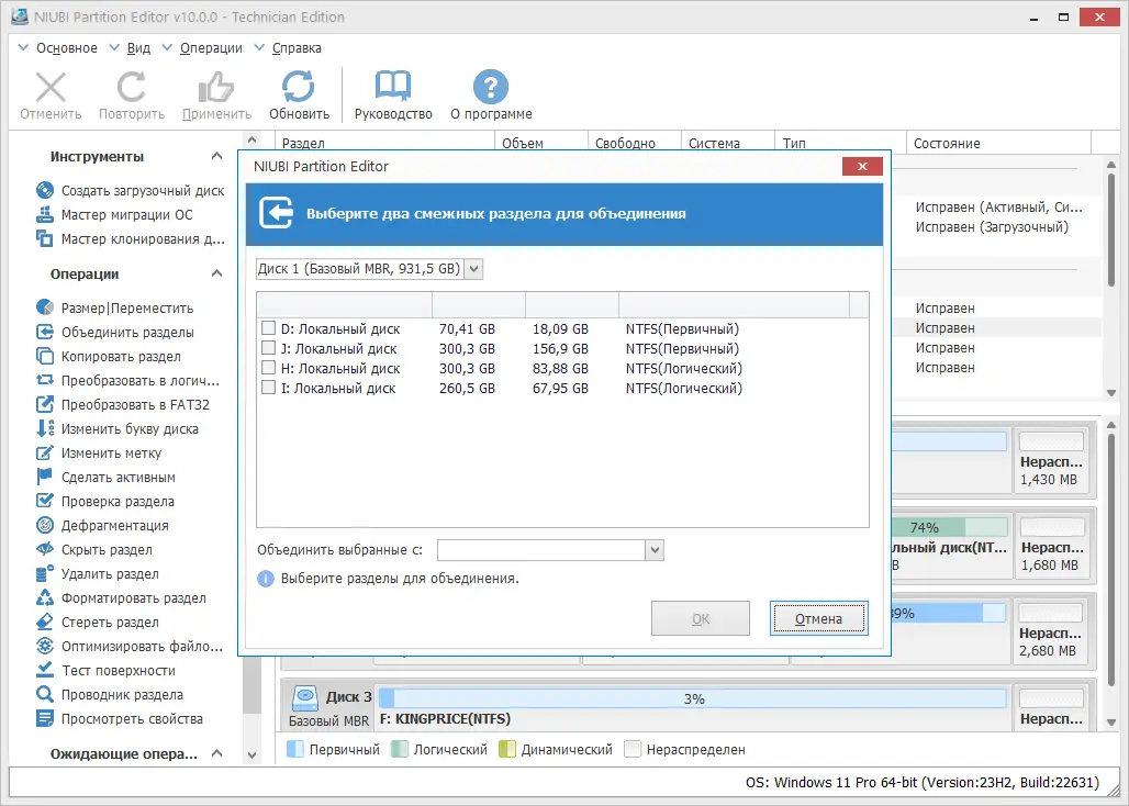 - Копирование и перенос разделов, конвертация между логическими и основными.