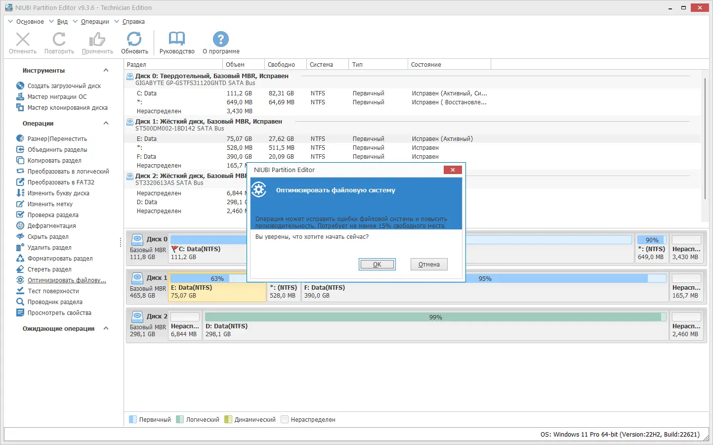 NIUBI Partition Editor — профессиональная программа для удобного и надежного управления разделами жесткого диска. Инструмент позволяет создавать, форматировать, удалять, активировать, прятать разделы, а также изменять их размер без потери данных. Благодаря встроенной технологии Roll-Back вы можете легко вернуть систему в исходное состояние в случае ошибок или проблем, связанных с операциями с разделами. Уникальный алгоритм перемещения файлов обеспечивает более высокую скорость работы — до 300% быстрее по сравнению с аналогами, что делает работу с дисками максимально эффективной и безопасной.