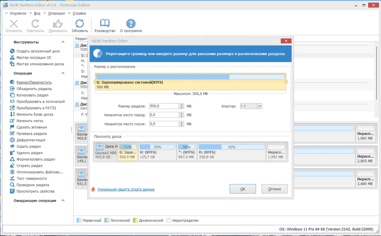 - Безопасное изменение размеров разделов, расширение NTFS без перезагрузки, копирование и конвертирование разделов.