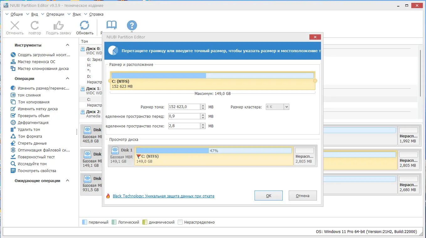 NIUBI Partition Editor – мощная программа для безопасного и эффективного управления жесткими дисками, которая позволяет создавать, форматировать, удалять разделы, а также изменять их размер и выполнять много других операций без потери данных.