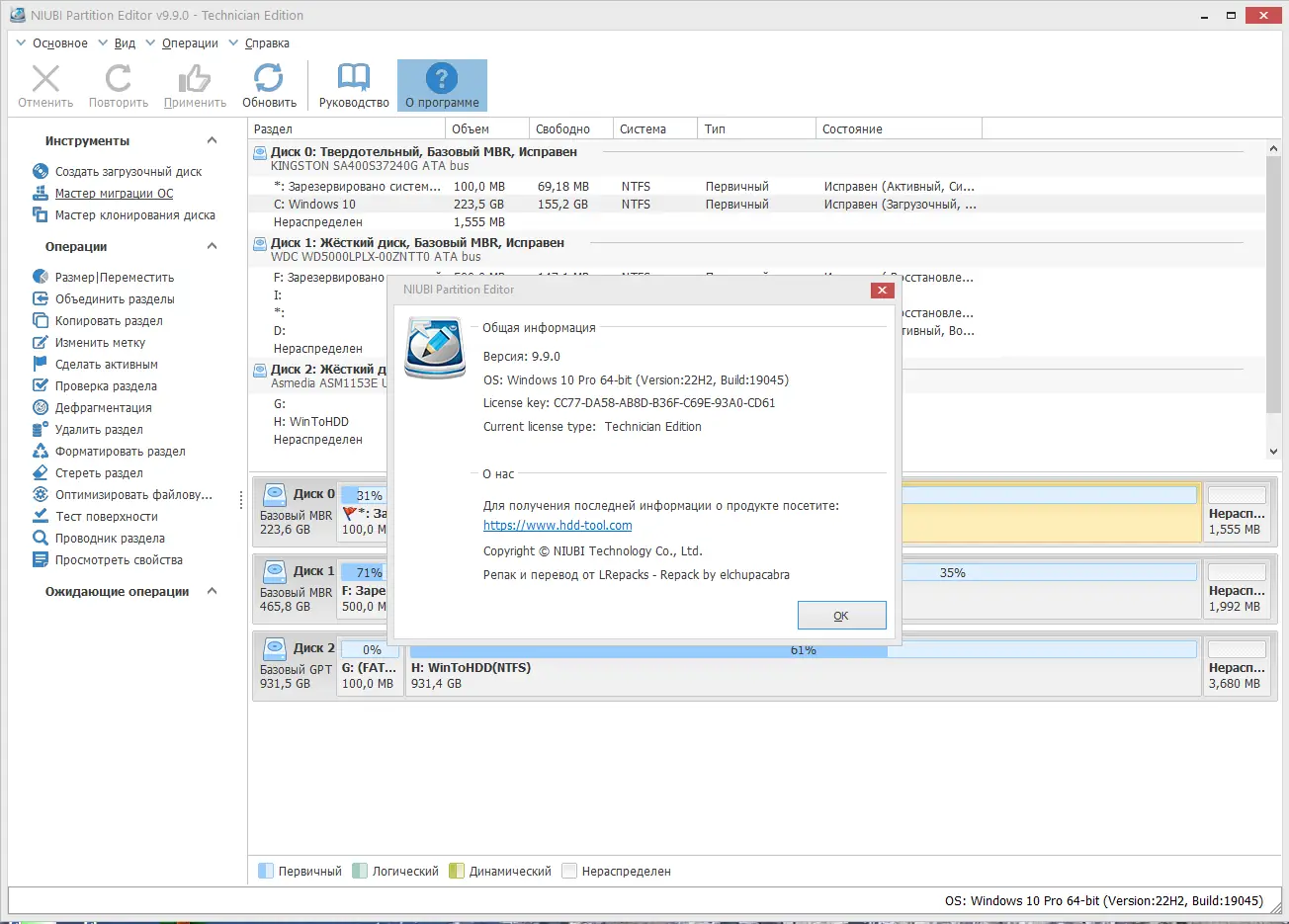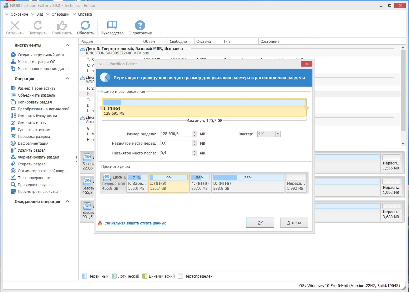 NIUBI Partition Editor — это мощная программа для простого и надежного управления разделами жесткого диска. Она позволяет создавать, форматировать, удалять, делать активными или прятать разделы, а также изменять их размер без потери данных и выполнять копирование разделов. В отличие от аналогов, в редактор встроена уникальная технология Roll-Back, которая помогает вернуть состояние диска перед внесением изменений, обеспечивая максимальную безопасность данных.