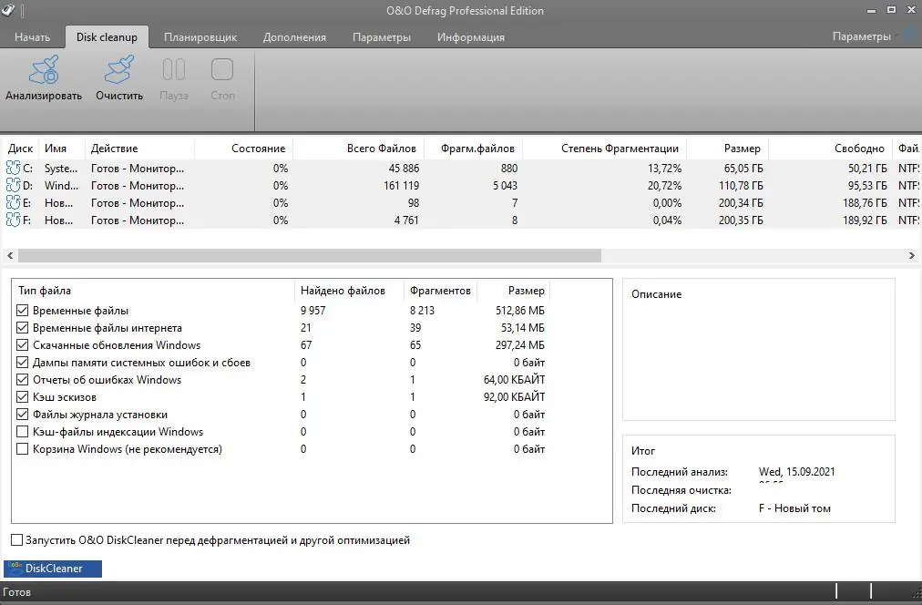 O&O Defrag — мощная программа для дефрагментации жестких дисков, предназначенная для повышения производительности рабочих станций и ноутбуков, работающих под управлением Windows. Обеспечивает быстрое и качественное восстановление скорости работы системы за счёт эффективного упорядочивания файлов и устранения фрагментации.