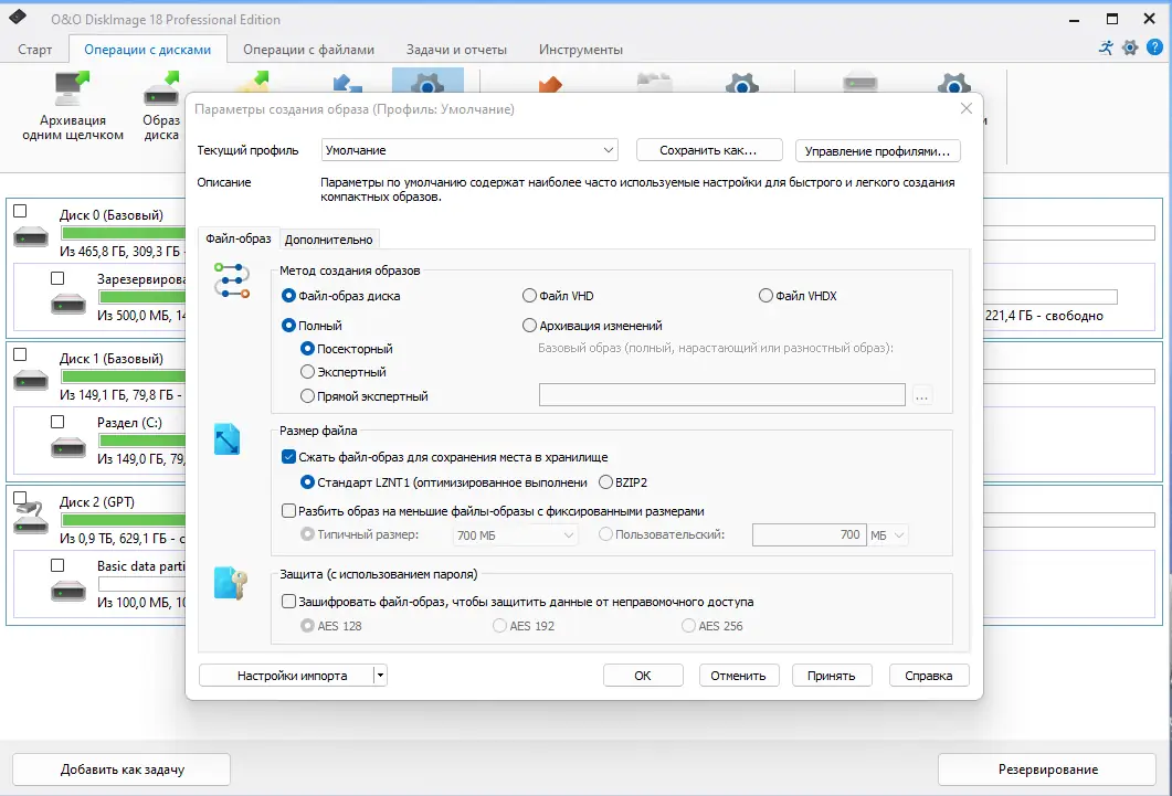 - Создание образов системы и жестких дисков, клонирование целых дисков