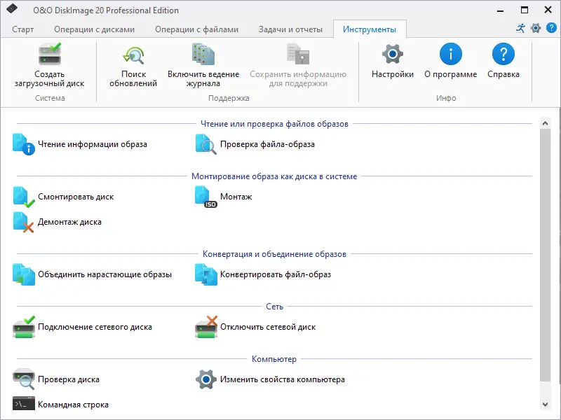- Создание загрузочных носителей для быстрого восстановления системы.