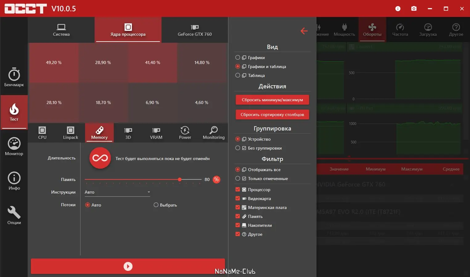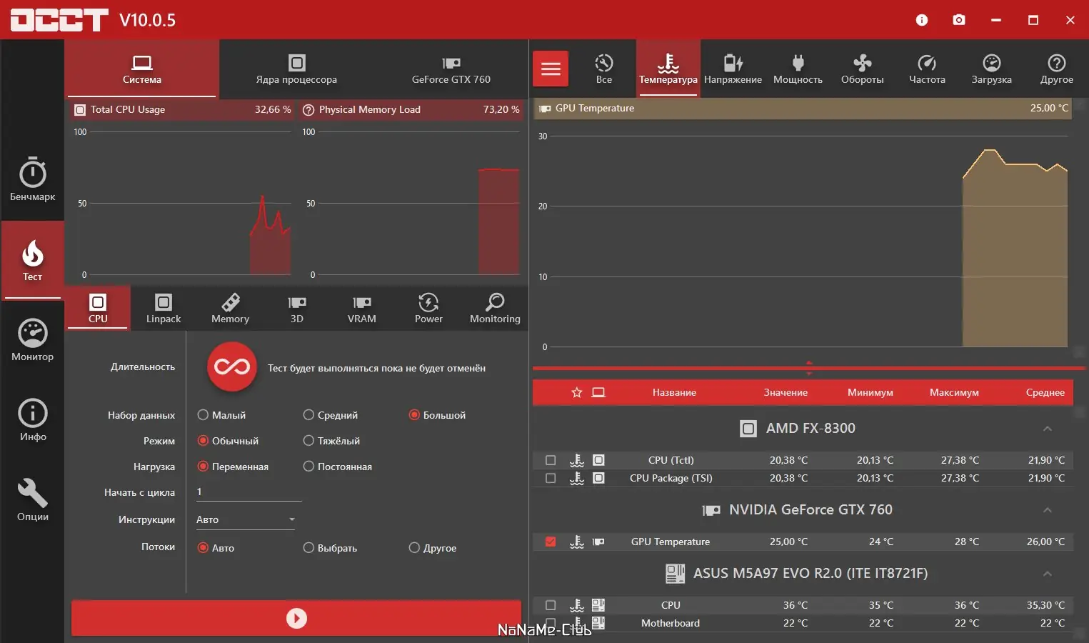 - Проведение нагрузочных тестов центрального процессора и оперативной памяти в паре;