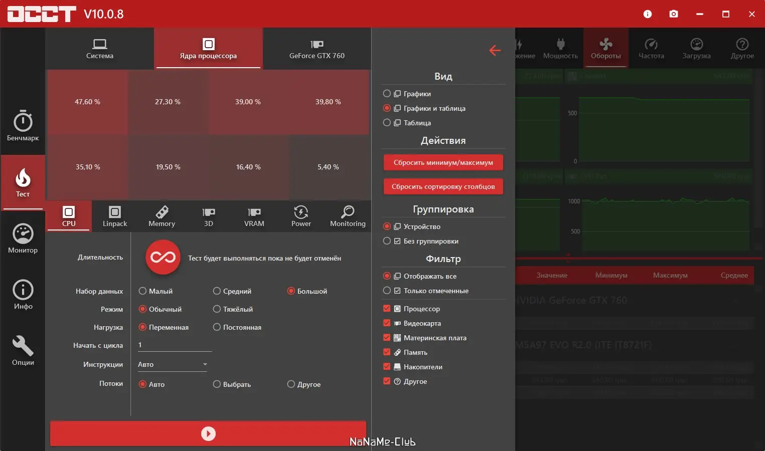 - Информативные графики и расширенные параметры мониторинга системы.