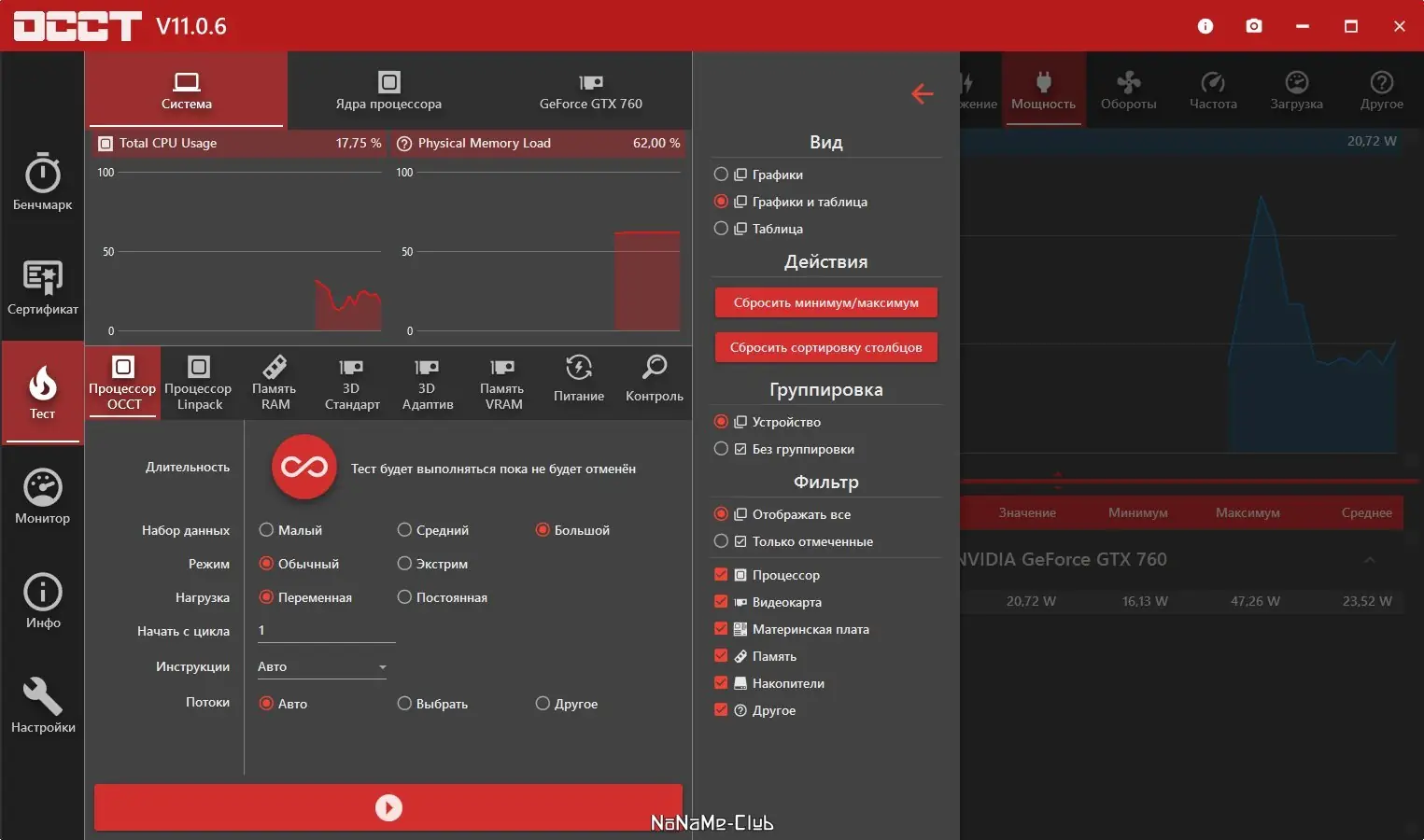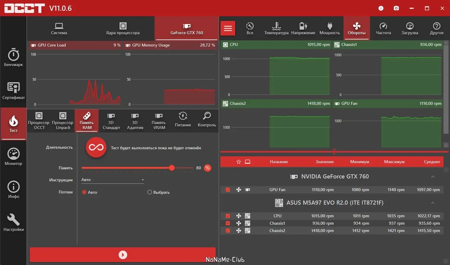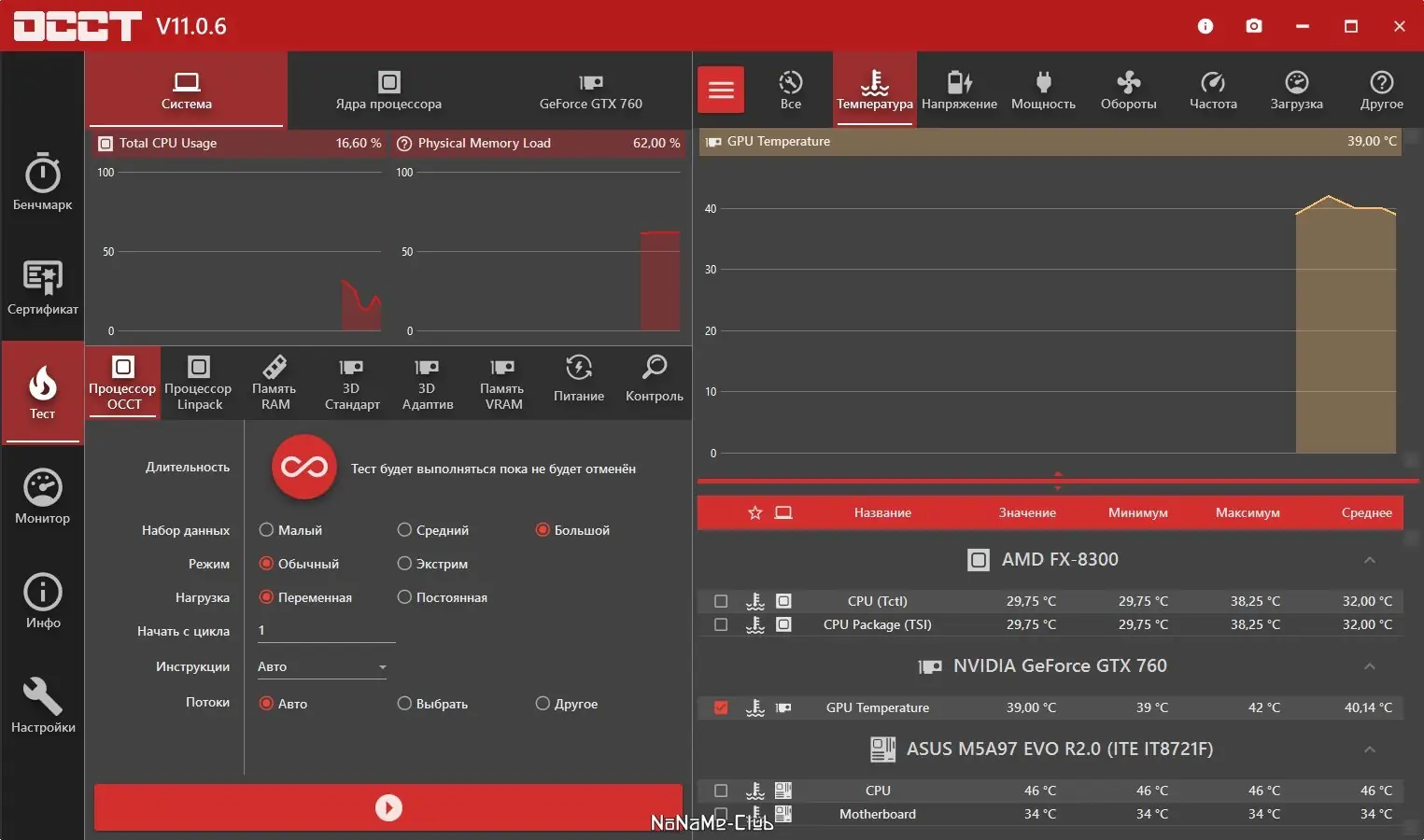 - Мониторинг рабочих параметров компонентов в реальном времени посредством сторонних программ;