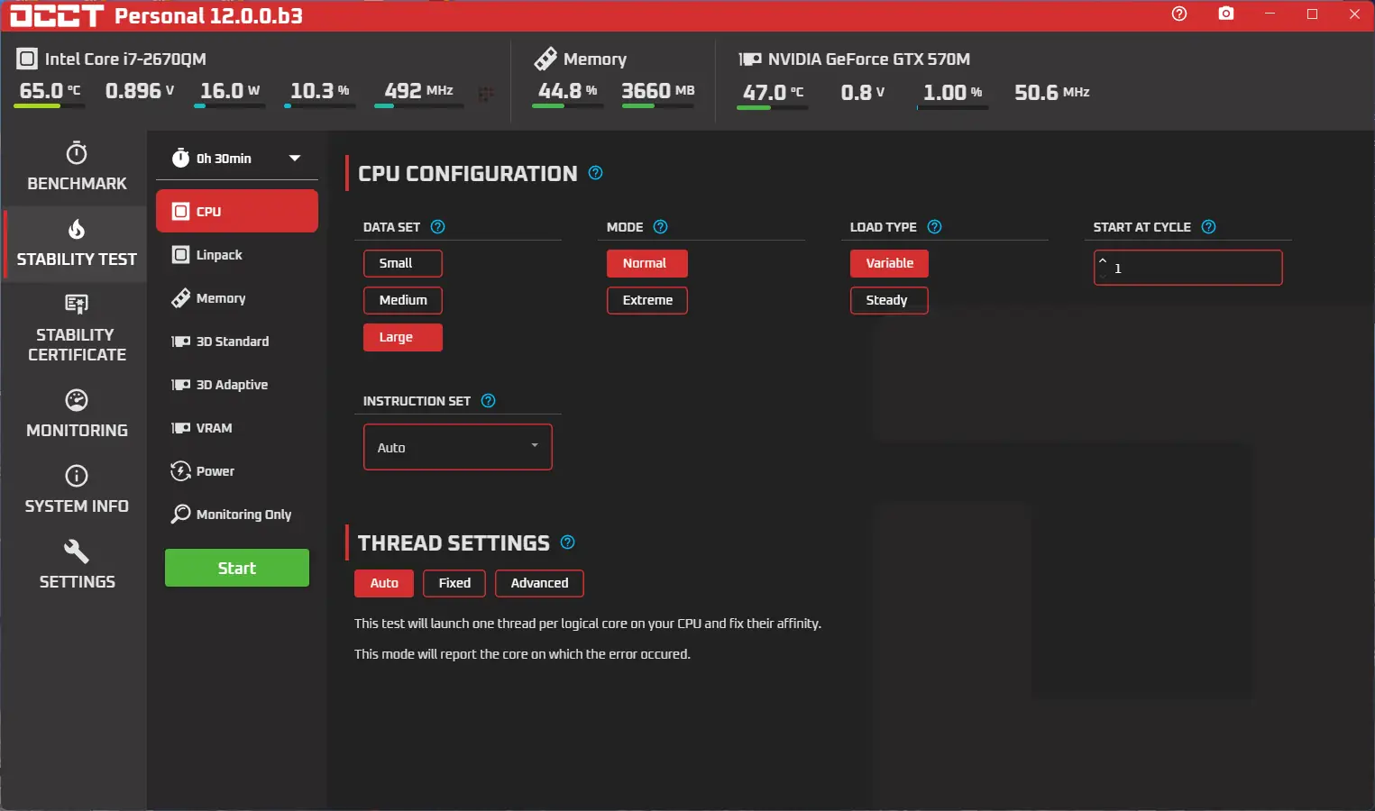 Перед началом проведения теста рекомендуется убедиться в чистоте системы охлаждения, чтобы избежать перегрева и повреждения компонентов. OCCT можно скачать бесплатно с официального сайта, а также через торрент по желанию пользователя, при этом он полностью легален и не содержит скрытых платных опций.