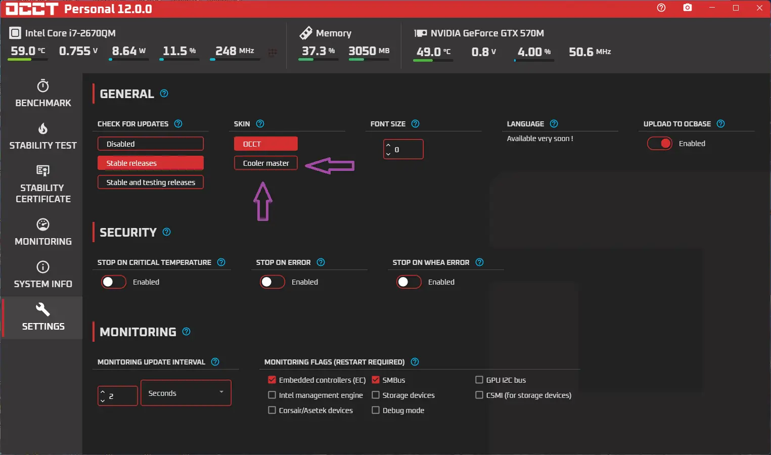 - Выбрать желаемую тему оформления (стандартную или Coolermaster).