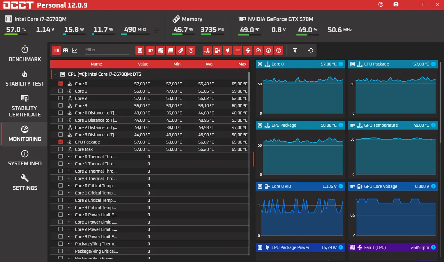 Это мощная утилита, которая позволяет выполнять парное тестирование: процессор с памятью и отдельную проверку стабильности центрального процессора. Результаты отображаются в виде информативных графиков, что облегчает мониторинг состояния системы. OCCT поддерживает работу с Windows 7, 8/8.1, 10 и 11 в версиях x32 и x64 Bit, а также имеет портативную версию, которая не требует установки и идеально подходит для быстрого тестирования на различных устройствах.