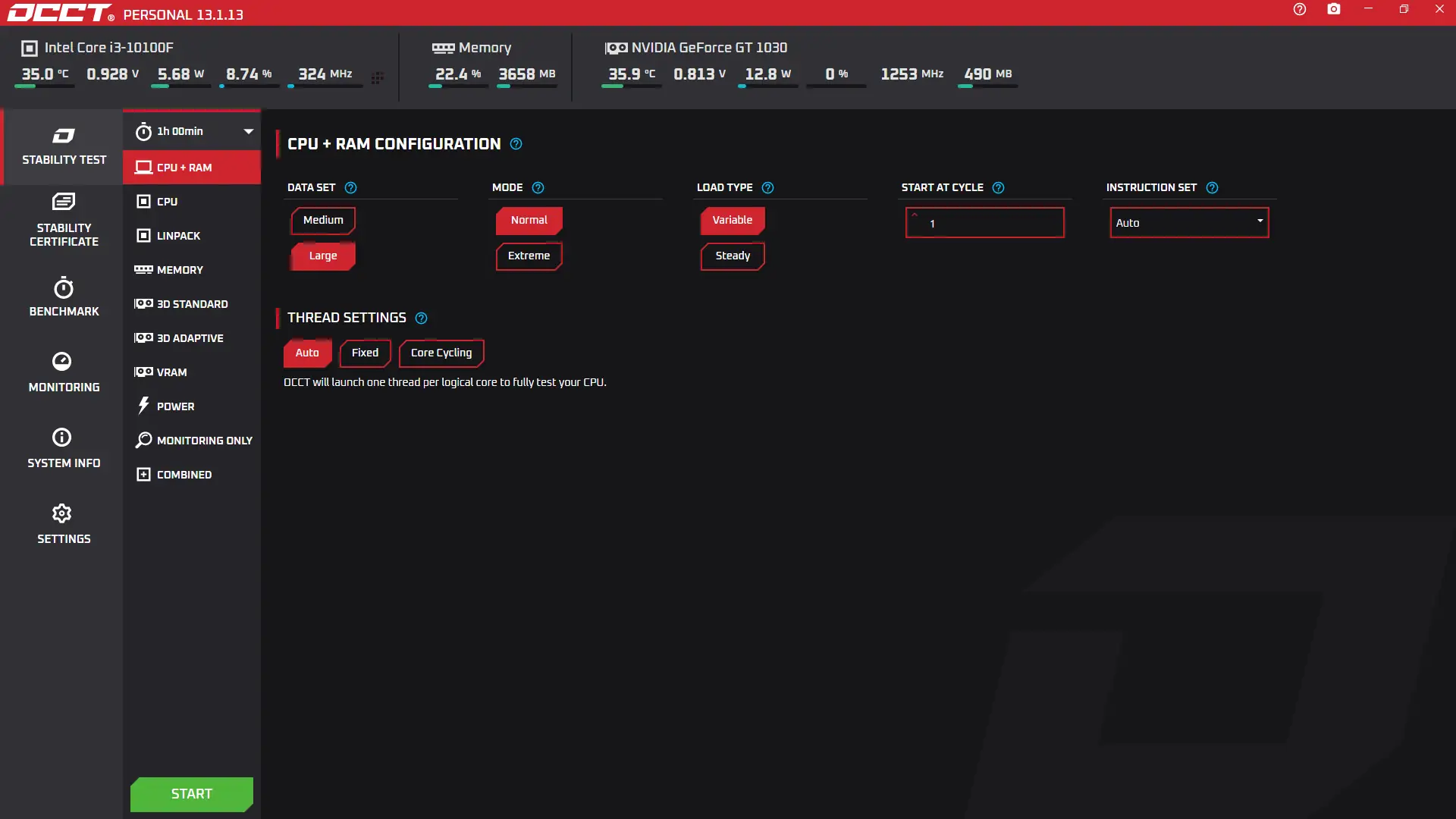 Обратите внимание, что OCCT предлагает не только автоматические режимы тестирования, но и позволяет настраивать параметры работы в ручном режиме, что делает его универсальным инструментом для профессионалов и любителей.