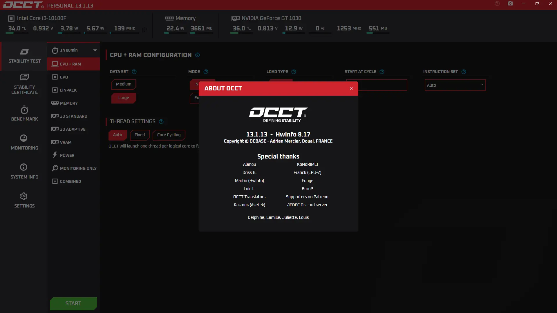 Программа для проведения синтетических тестов на стабильность работы компьютера, позволяющая оценить работу компонентов системы и выявить возможные неполадки. Обеспечивает парное и отдельное тестирование процессора и оперативной памяти, а также мониторинг параметров с использованием сторонних программ.