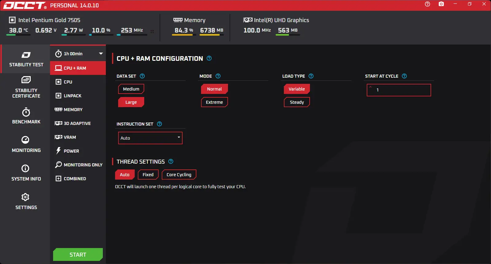 Обратите внимание: перед началом проведения теста убедитесь, что система охлаждения чистая и работает исправно, чтобы избежать перегрева компонентов во время нагрузок.