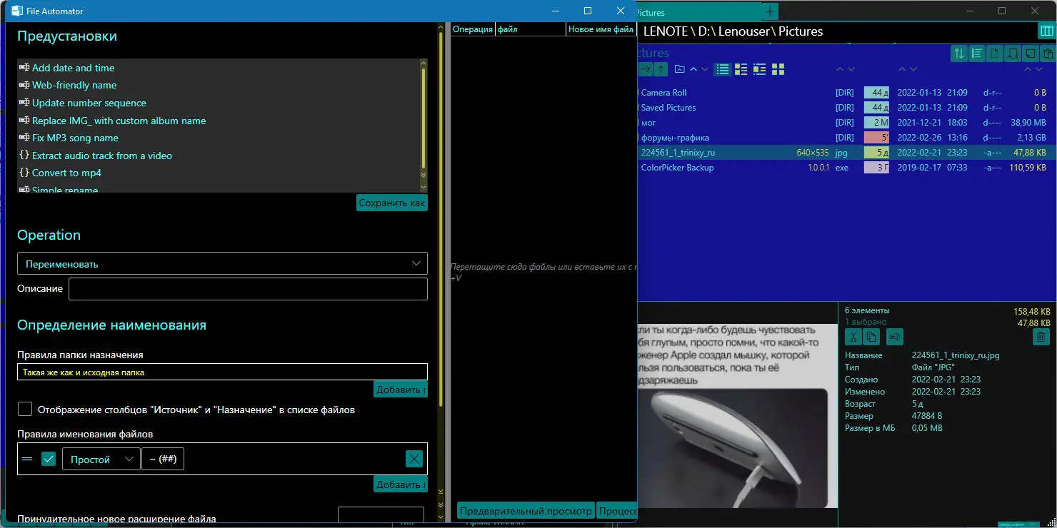 Особенности включают поддержку вкладок, браузеры с двумя панелями, интеллектуальную навигацию, автоматическую подстройку размеров панелей, быстрое переименование с использованием регулярных выражений, менеджер задач, предварительный просмотр и конвертацию изображений. Также программа помогает упростить работу с деревом папок и осуществлять поиск по имени и дате файлов, выделяя их цветами и показывая относительные даты. Бесплатное распространение идеально подходит для домашнего использования, а наличие portable-версии позволяет запускать программу без установки, что определенно удобно при переносе и использовании на разных устройствах.