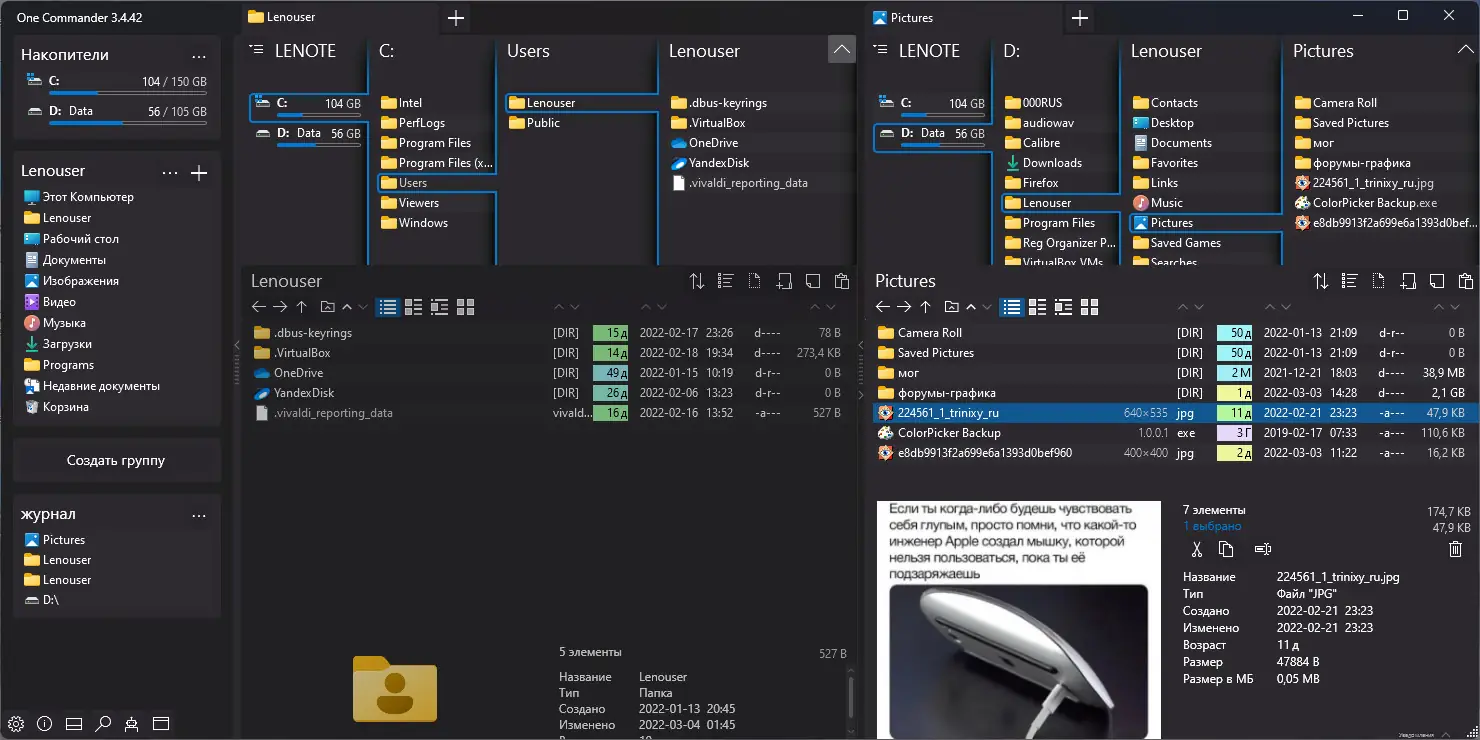 Данный файловый менеджер предлагает пользователю инновационный интерфейс с вкладками, двойными панелями и навигацией по столбцам, что значительно упрощает работу с большим количеством данных. Встроенные функции предварительного просмотра, система цветовых тегов и темы делают работу комфортной и визуально приятной. Программа помогает избегать неудобств, связанных с длинными путями и вложенными структурами, предоставляя возможность отображать всю структуру папок на удобных панелях, а также быстро искать нужные файлы по символам или диапазонам дат. Использование регулярных выражений для переименования файлов, перемещение и копирование в списках, а также возможность предварительного просмотра и конвертации изображений делают этот редактор предпочтительным решением для многих пользователей.