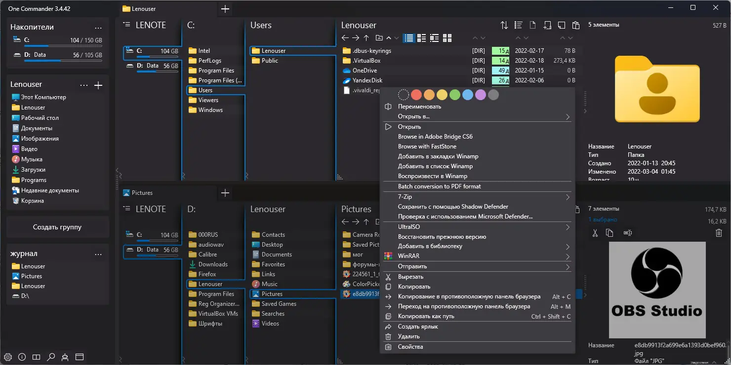 One Commander — это современный и удобный файловый менеджер, предназначенный для использования на Windows 10 и Windows 11. Обладает расширенными возможностями для быстрого и эффективного управления файлами и папками, при этом оставаясь бесплатным для домашнего использования и не содержащим рекламы.