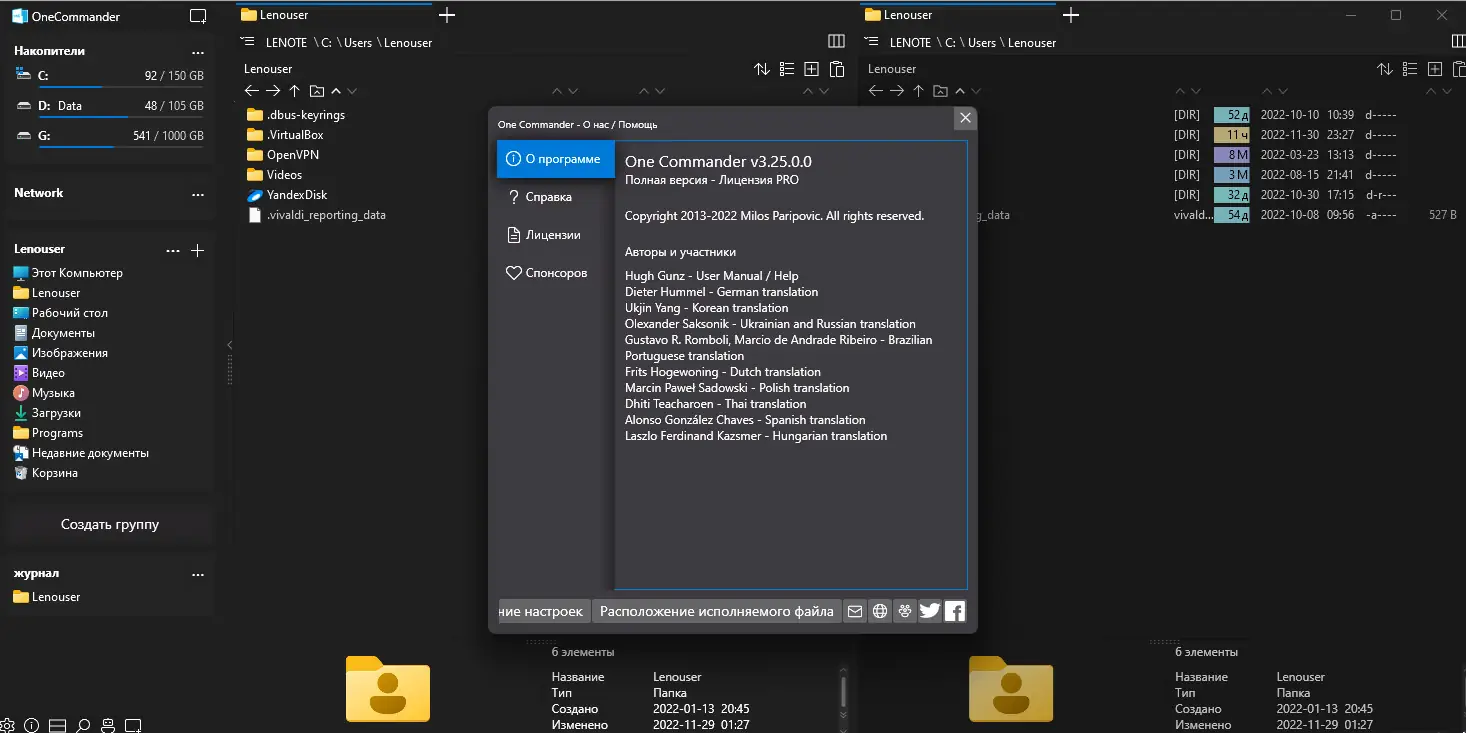 - Мультипанельный интерфейс с возможностью работы с несколькими папками одновременно