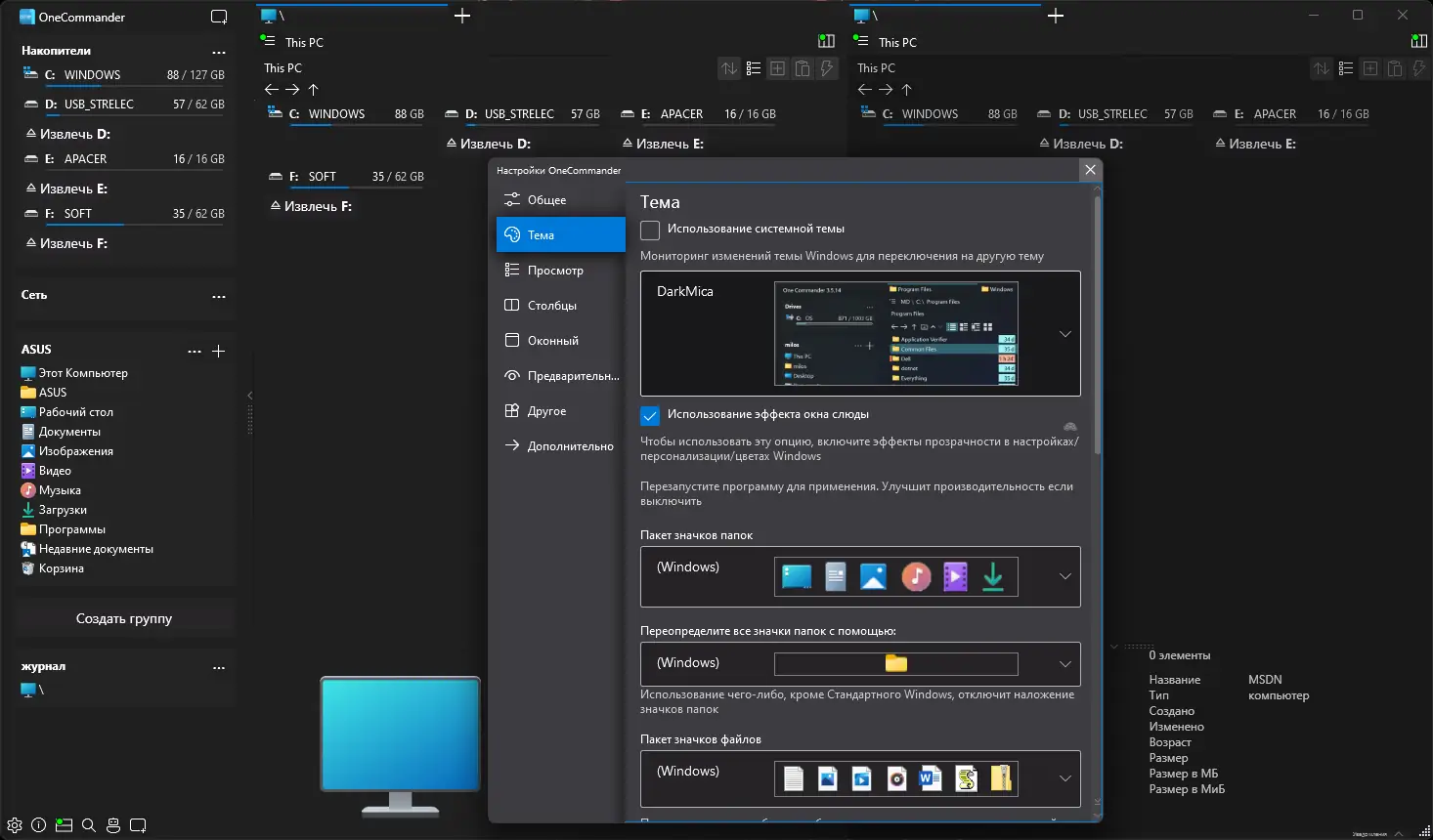 - Мультитемная навигация и вкладки для быстрого переключения между папками
