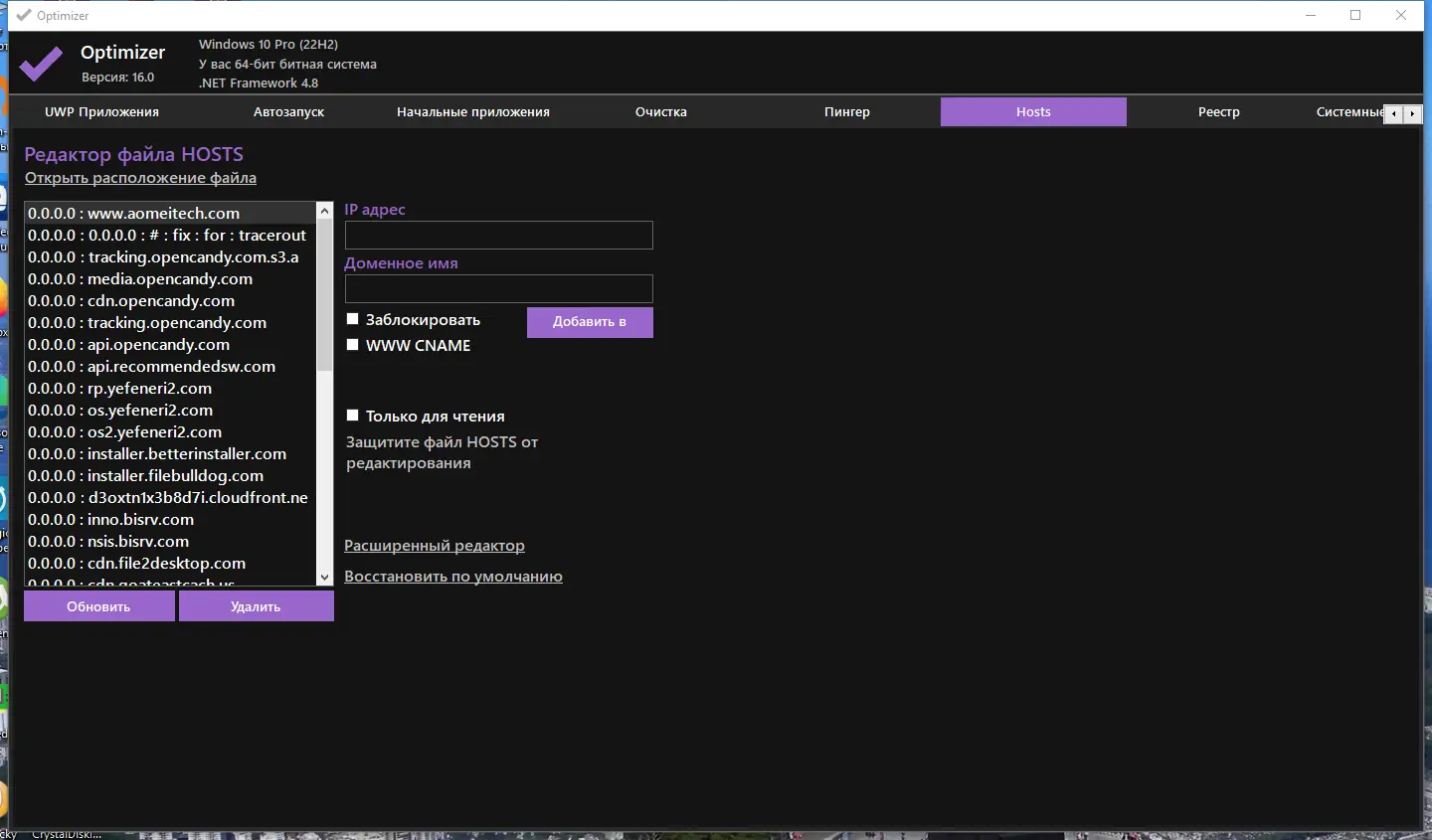 Optimizer — это утилита расширенной настройки системы, которая помогает восстановить конфиденциальность и повысить безопасность вашего компьютера.