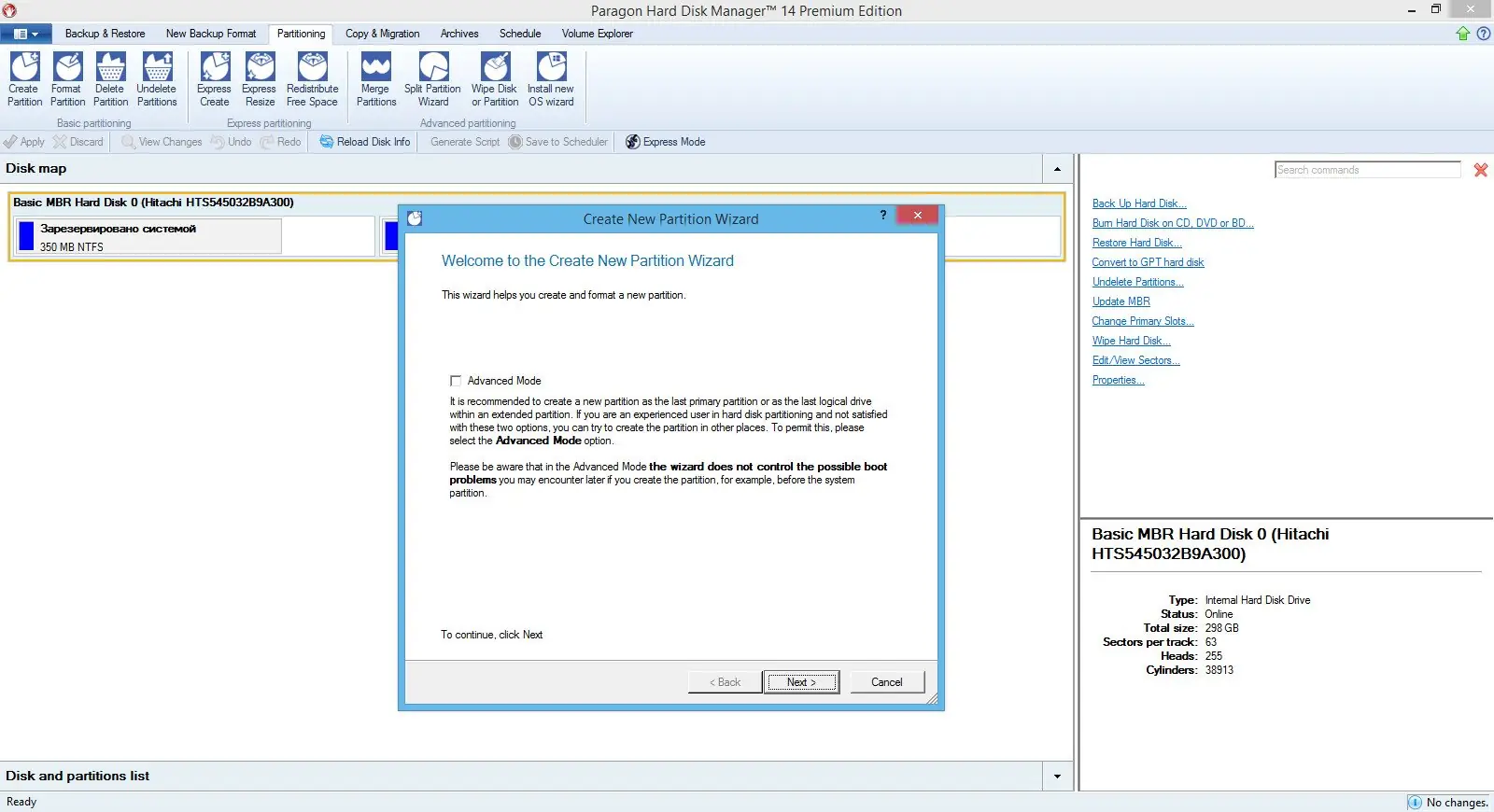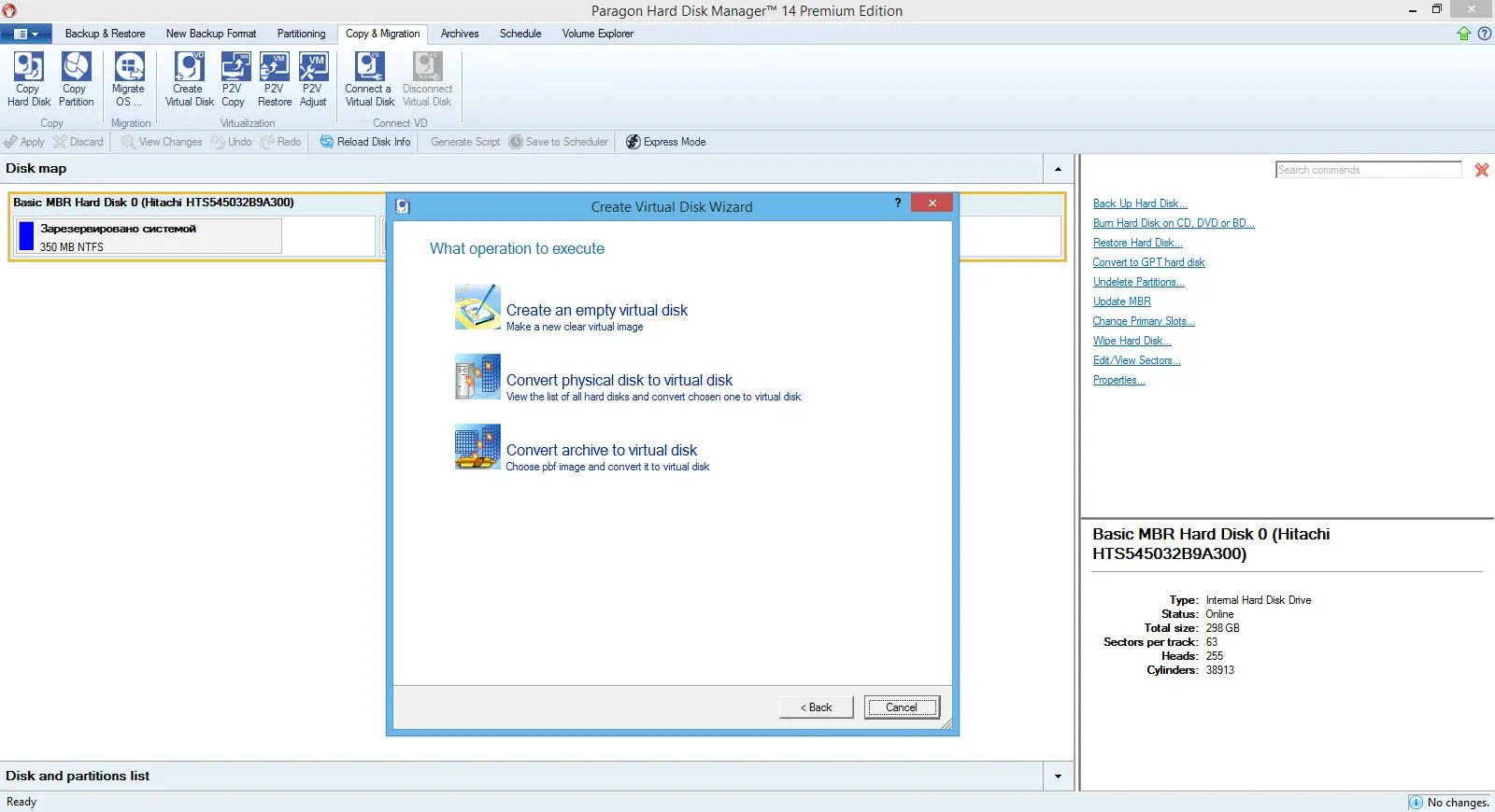 - Широкий набор функций для работы с разделами, резервирования и миграции, что позволяет полностью управлять дисковым пространством.