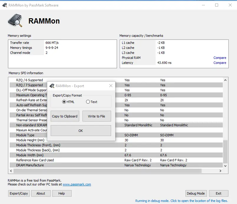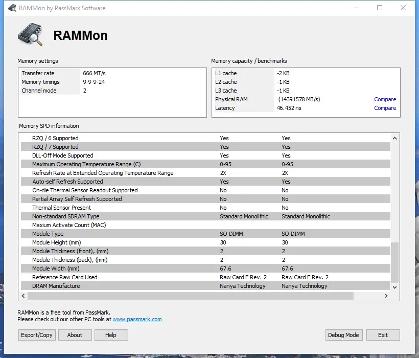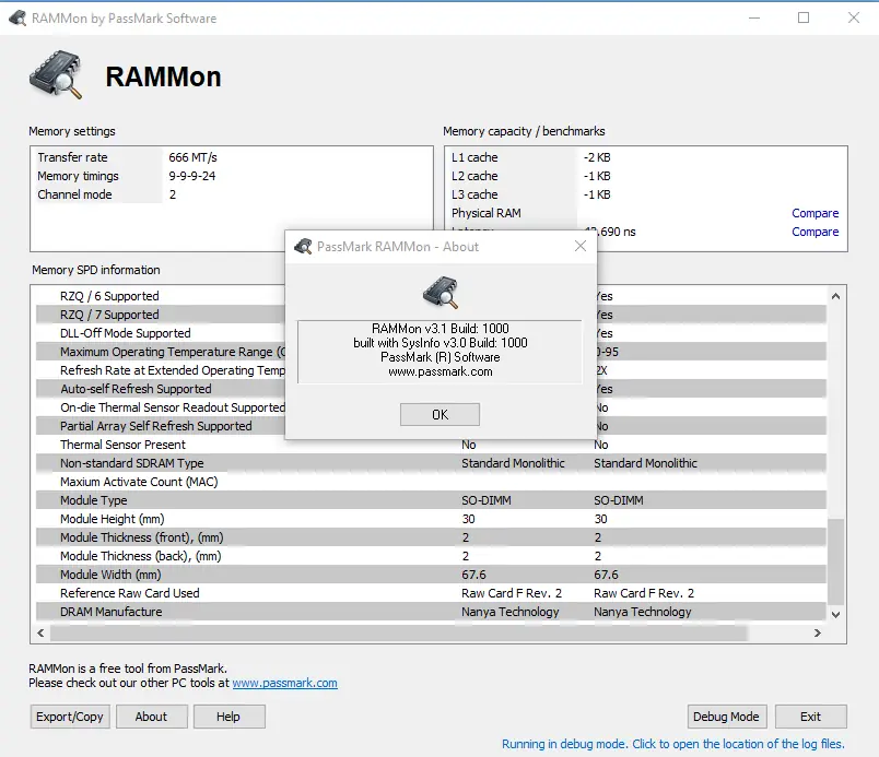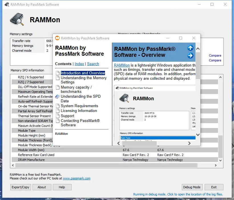 PassMark RAMMon — это мощная утилита для диагностики и анализа памяти, которая позволяет получать подробную информацию о модулях оперативной памяти, установленных в компьютерной системе. Программа поддерживает различные типы памяти и предоставляет данные, необходимые для оценки состояния и характеристик установленных модулей.