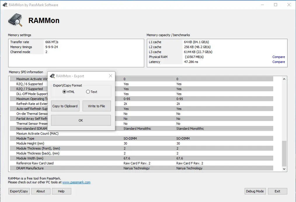 Программа позволяет экспортировать полученные сведения в документ, что удобно для ведения учета и дальнейшего анализа. Благодаря простому интерфейсу и расширенным возможностям отображения, PassMark RAMMon становится незаменимым помощником для системных администраторов и энтузиастов.