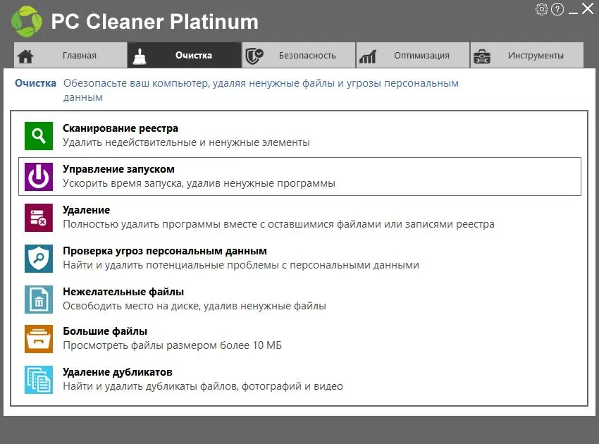 PC Cleaner Platinum предлагает пользователю широкий спектр инструментов для улучшения работы компьютера, обеспечивая высокую эффективность и простоту использования. Он подходит для пользователей с различным уровнем знаний и позволяет легко устранять системные ошибки и поддерживать ПК в оптимальном состоянии.