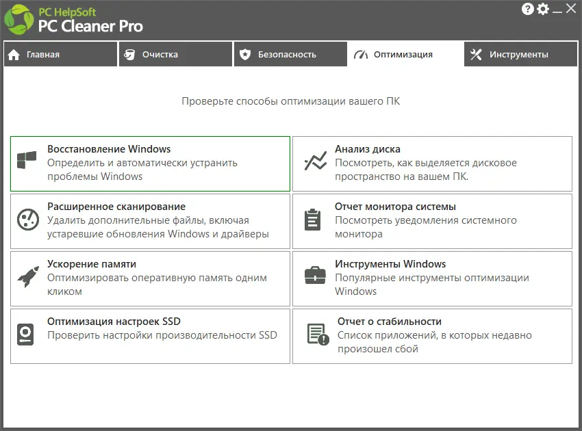 PC Cleaner — это мощная и многофункциональная программа для повышения скорости и эффективности работы персонального компьютера. Она включает широкий спектр инструментов для очистки системы, устранения ошибок и оптимизации настроек.