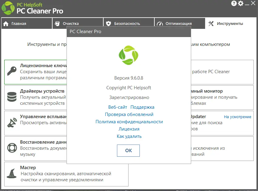 Программа предназначена для тщательной очистки ПК и его обслуживания. Она удаляет ненужные файлы, исправляет ошибки реестра, оптимизирует настройки системы безопасности и интернета, что позволяет вашему компьютеру работать быстрее и стабильнее. Кроме того, PC Cleaner помогает защитить личную информацию от посторонних глаз, устраняя следы вашей деятельности в браузерах и системе. Интуитивный интерфейс и простота установки делают её подходящей как для опытных пользователей, так и для начинающих. Выровнять работу системы и повысить ее безопасность с помощью PC Cleaner — разумное решение для каждого владельца ПК.