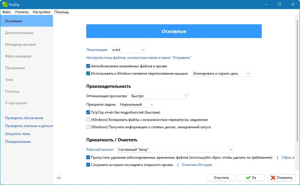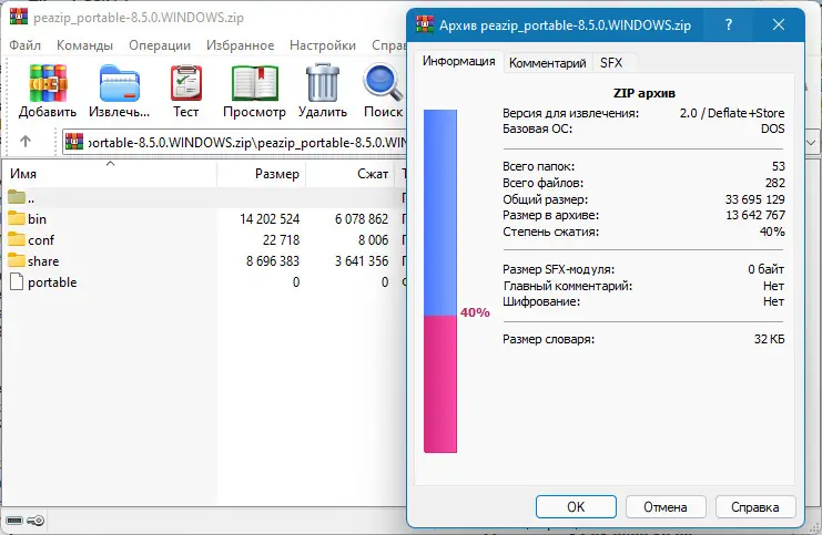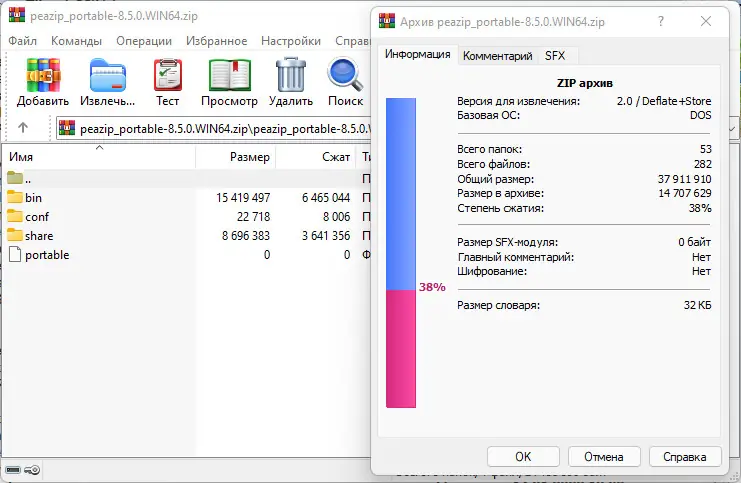 Данная программа предоставляет удобный интерфейс для создания, открытия и управления архивами в различных форматах, а также обеспечивает высокий уровень безопасности данных за счет встроенных функций шифрования. Она поддерживает собственный формат архивов Pea и множество популярных форматов, используя внешние библиотеки и программы. PeaZip идеально подходит для пользователей, ищущих надежный и бесплатный инструмент для работы с архивами на Windows и Linux, а также для тех, кто предпочитает скачать бесплатно на русском языке и работает на системах Windows 7, 8/8.1, 10, 11 как x32, так и x64 Bit.