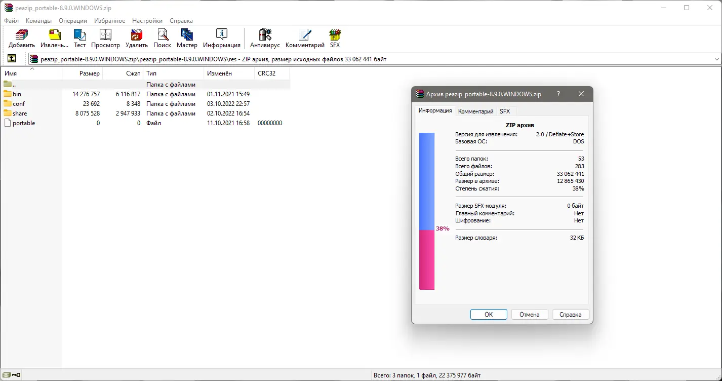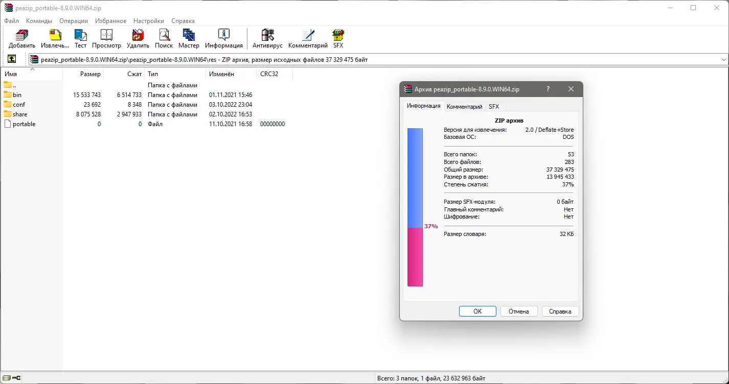 PeaZip — это бесплатный архиватор и графическая оболочка для других архивных программ, позволяющая эффективно управлять файлами и обеспечивать безопасность данных. В программе реализованы функции шифрования, создания многотомных архивов, работу с несколькими архивами одновременно и экспорт заданий в виде командной строки. Благодаря собственному формату архивов Pea, а также поддержке большинства популярных форматов, программа подходит как для личного, так и для профессионального использования на системах Windows и Linux.