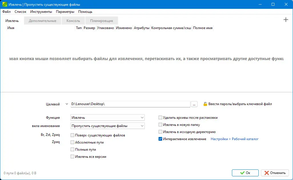 - Создавать архивы в форматах 7Z, ZIP, TAR, RAR и других