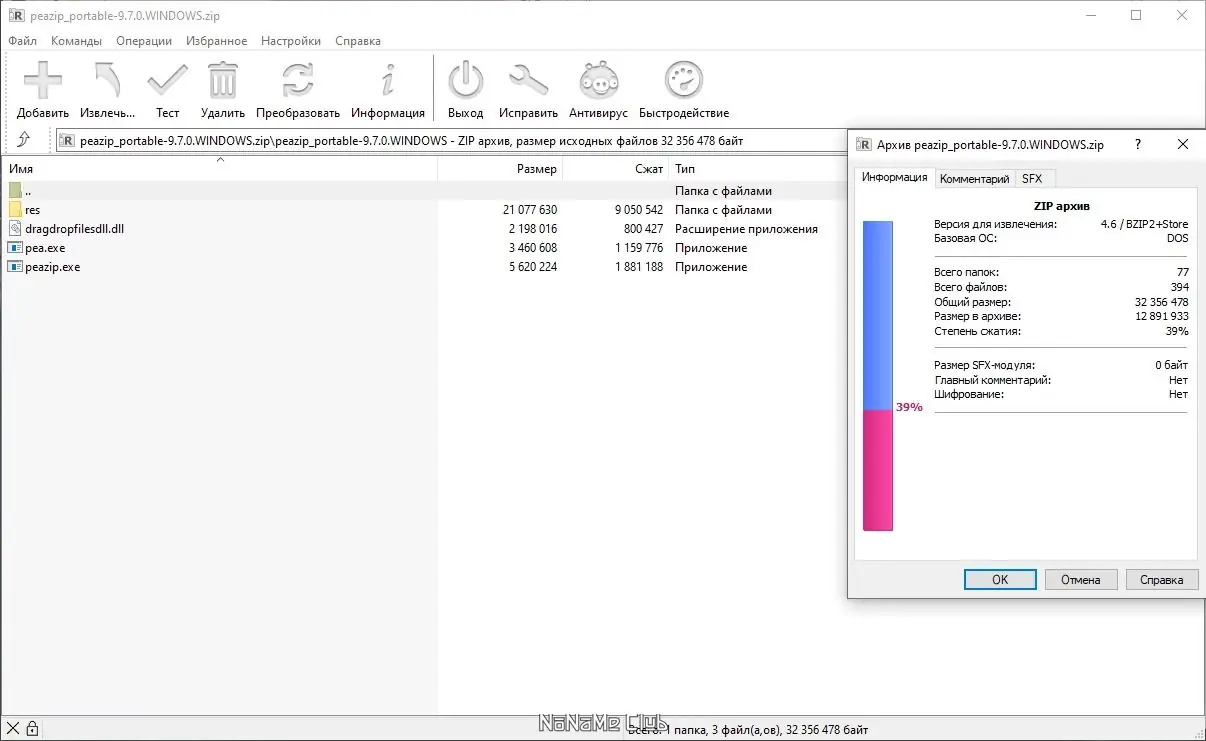 PeaZip — бесплатный архиватор и графическая оболочка для других архивных программ, предоставляющий широкий набор инструментов для работы с файлами и архивациями.