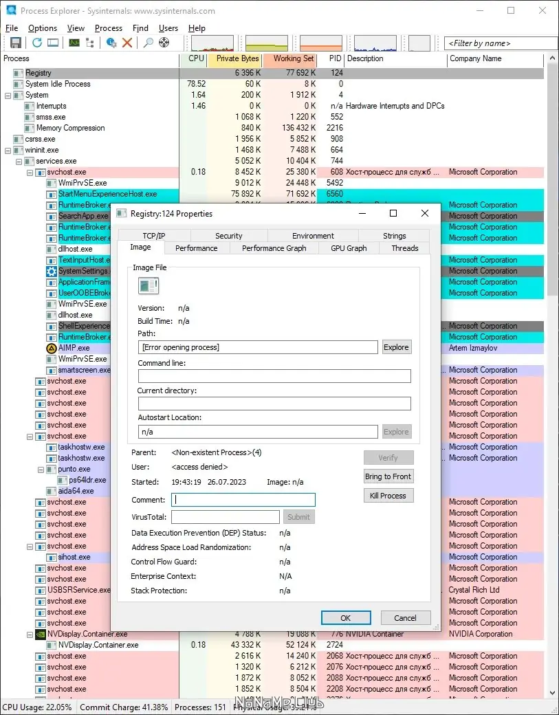 Process Explorer представляет собой мощную утилиту, разработанную компанией Sysinternals и поставляемую Microsoft, предназначенную для глубокого анализа процессов и системных компонентов. Она отображает в своём окне подробные сведения о каждом запущенном процессе, включая его инициализатор, список DLL и дескрипторов ядра, а также статистику использования памяти, процессора, диска и сети. Благодаря визуальным подсказкам и цветовой маркировке, можно легко определить тип процесса — службы, процессы .NET, процессы под той же учетной записью или особенно упакованные образы. Возможность поиска процесса по использованию ресурса — по файлу, каталогу или реестровому ключу — облегчает диагностику и поиск скрытых вредоносных программ, таких как майнеры. Встроенная функция «найти цель» позволяет перетащить мышью на любое окно, чтобы мгновенно определить его хозяина или связанный процесс. Настраиваемое отображение столбцов и информации обеспечивает гибкую работу с данными, а запуск программы без необходимости установки делает её удобным инструментом для быстрого анализа системы или диагностики проблем.