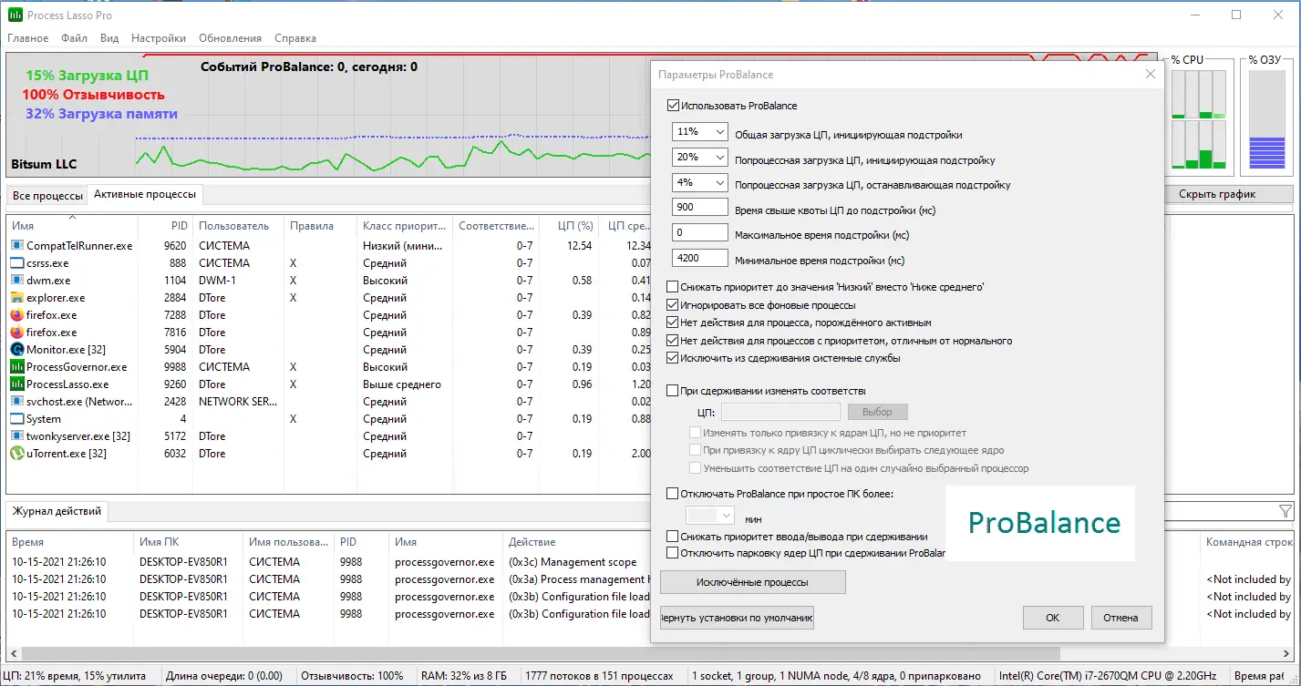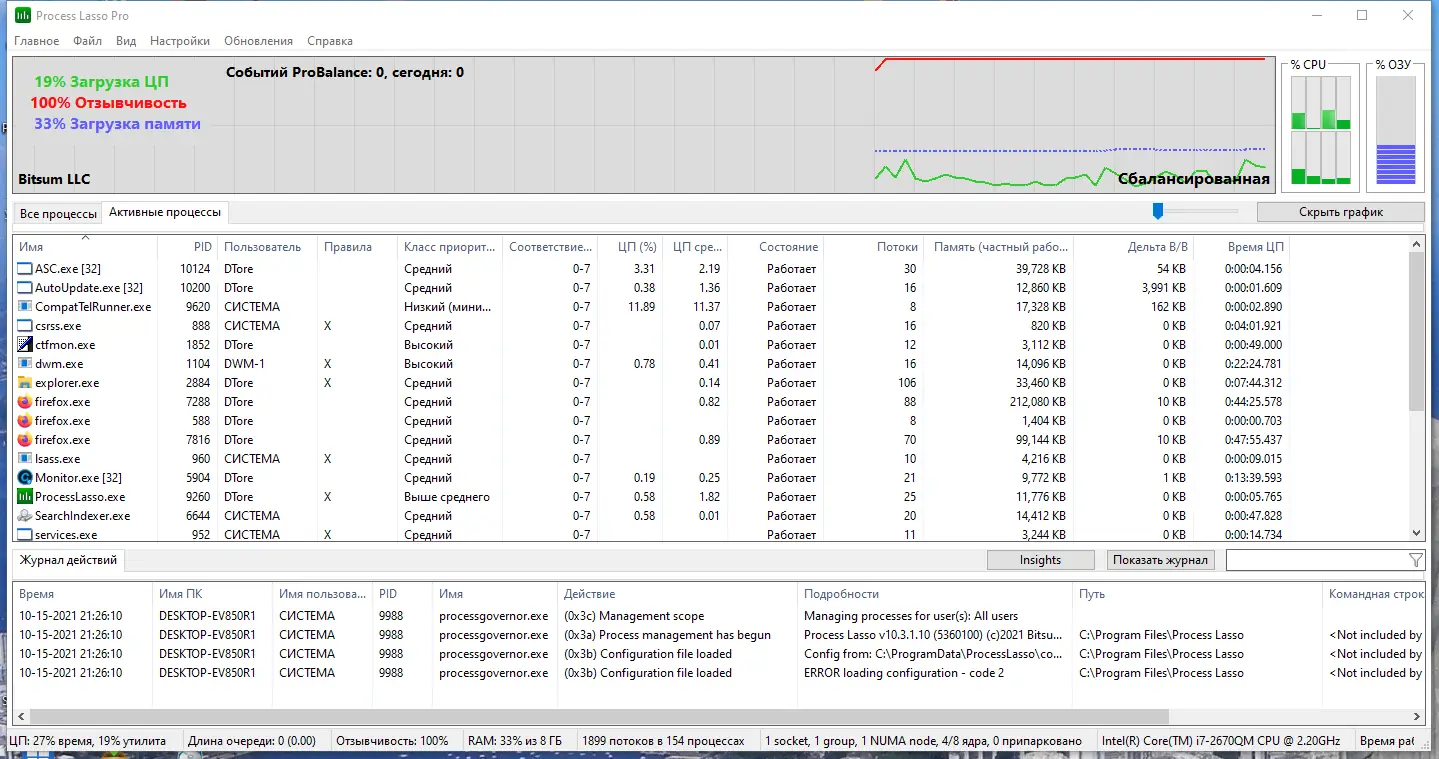 Process Lasso — это мощная программа для управления процессами, позволяющая повысить стабильность и производительность системы. Она предлагает как ручную, так и автоматическую настройку приоритетов запущенных процессов, что способствует оптимальному распределению ресурсов и быстрому отклику операционной системы.