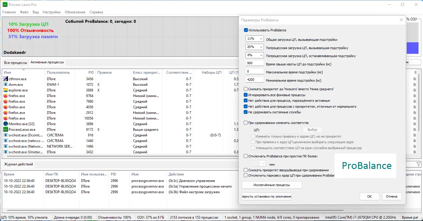 Process Lasso предлагает ряд преимуществ, повышающих комфорт и производительность работы системы, однако есть и моменты, которые требуют учета.