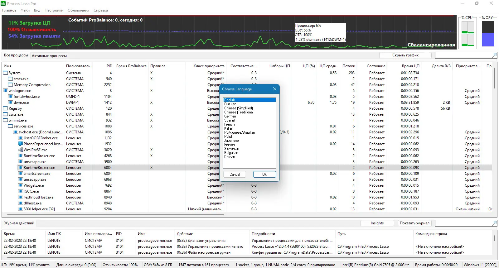 При использовании Process Lasso значительно повышается отклик системы, ускоряется работа программ на переднем плане и снижается риск зависаний. Это особенно важно для пользователей, работающих с ресурсоемкими приложениями или в условиях высокой многозадачности.