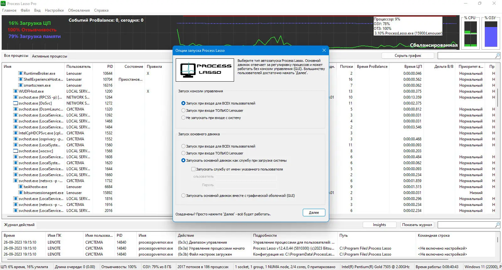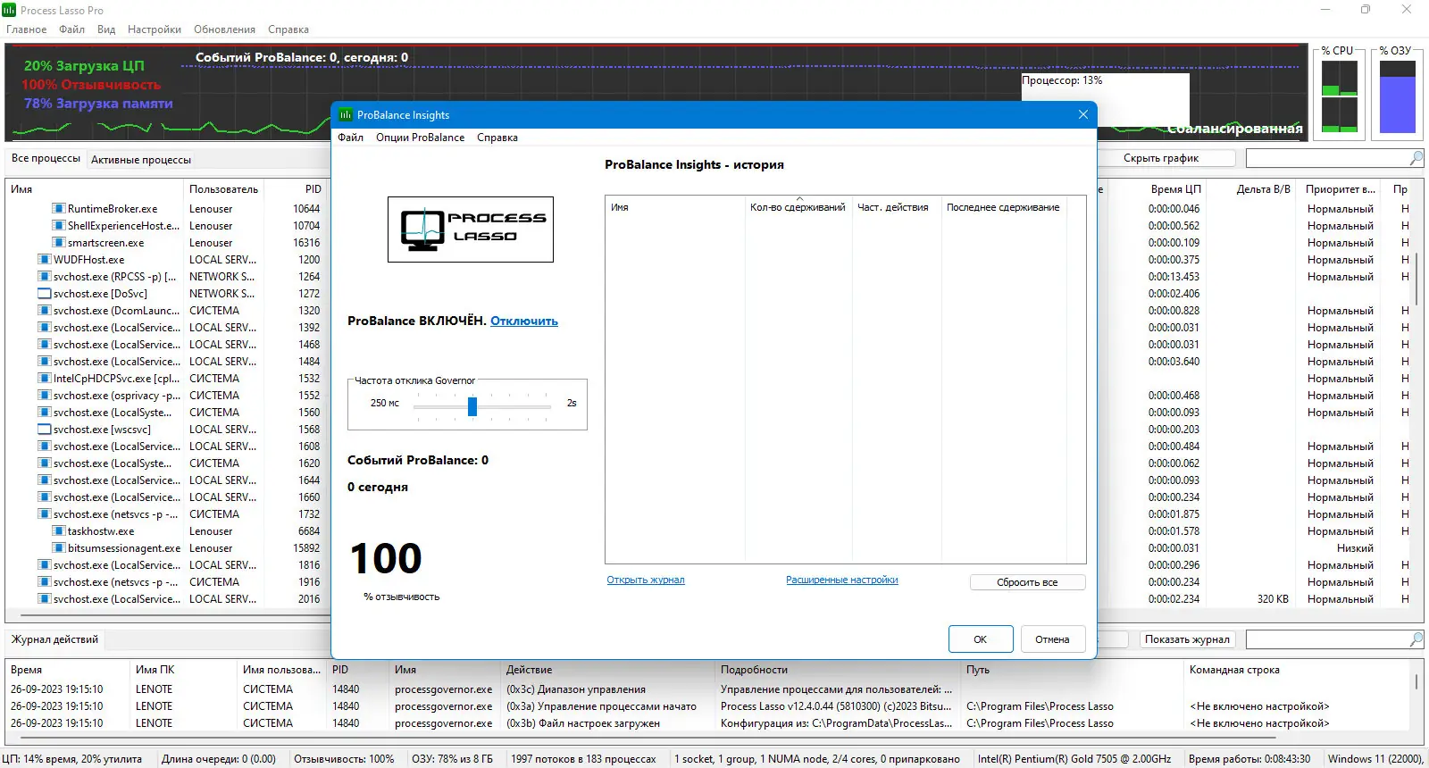 Process Lasso — мощное решение для оптимизации работы компьютера под управлением Windows. Оно наблюдает за запущенными процессами, активно загружающими центральный процессор, и ограничивает их, чтобы избежать зависаний и снизить нагрузку. Технология ProBalance позволяет аккуратно перераспределять приоритеты программ, что делает систему более отзывчивой и стабильной, независимо от запущенных задач. Программа может автоматически снижать приоритет ресурсов для наиболее требовательных процессов и управлять количеством копий приложений, предотвращая перегрузки. Поддержка как 32-битных, так и 64-битных систем, включая Windows 7, 8/8.1, 10 и 11, обеспечивает широкую совместимость и эффективность работы.