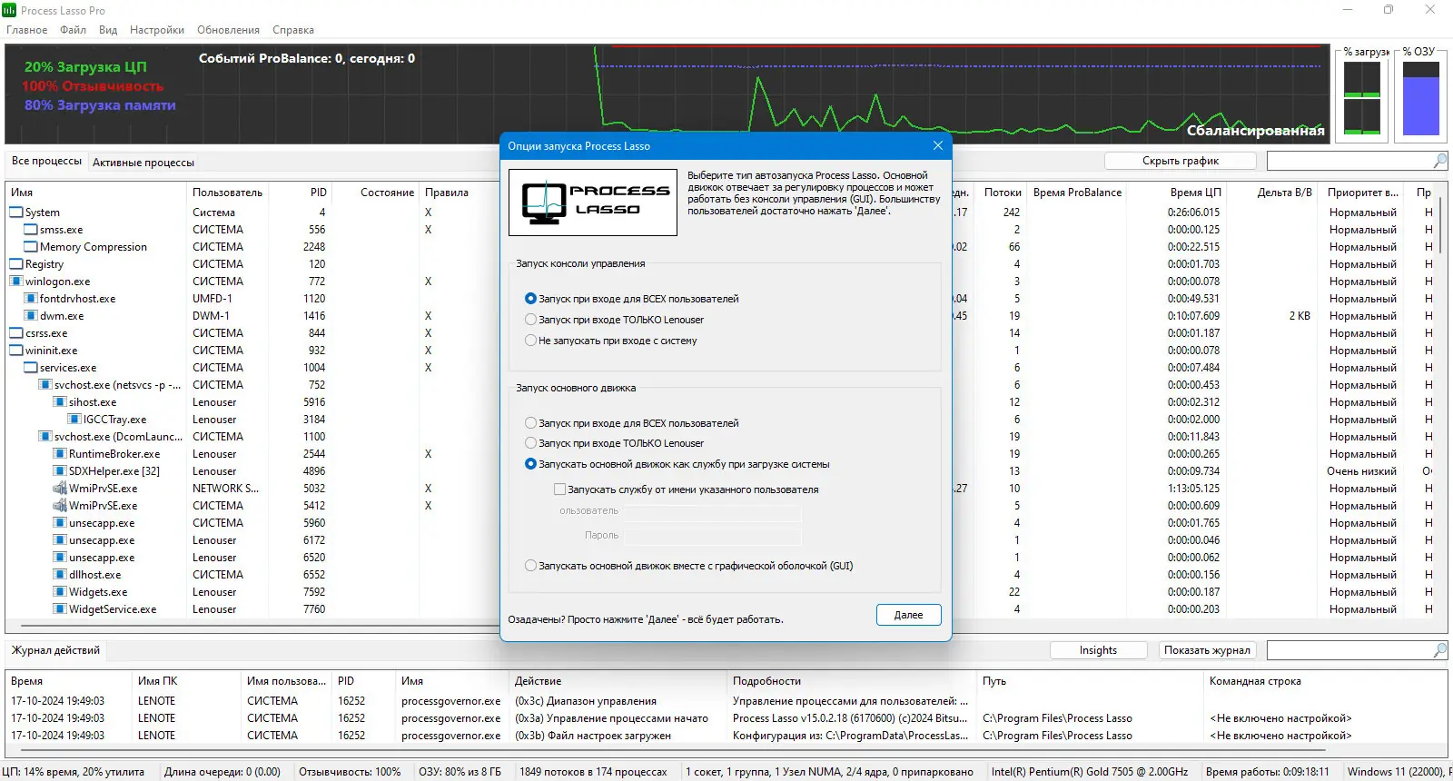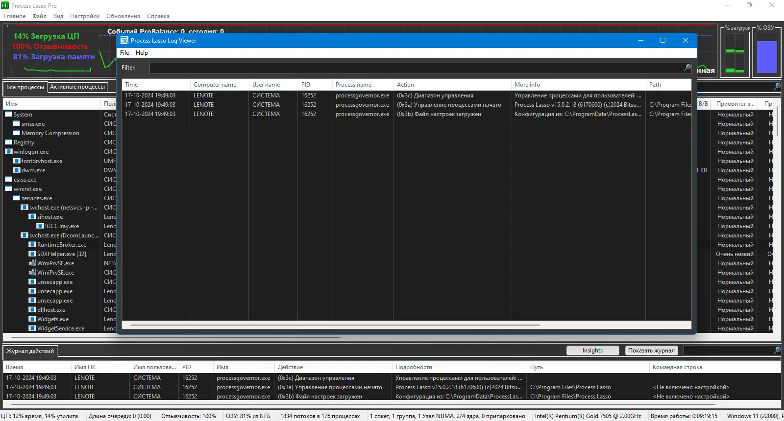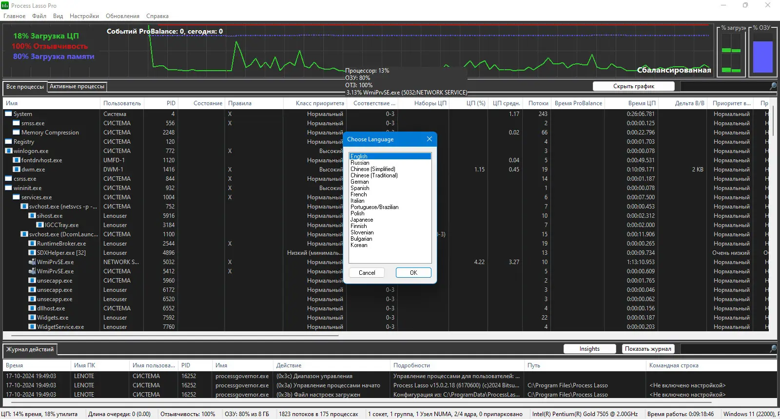 Обеспечивая динамическое перераспределение приоритетов запущенных процессов, Process Lasso предотвращает чрезмерную загрузку центрального процессора одними программами, что особенно важно при использовании Windows 7, 8/8.1, 10 и 11 на системах с архитектурой x32 или x64 Bit. Технология ProBalance способствует равномерному распределению ресурсов, благодаря чему система становится более отзывчивой и устойчивой к нагрузкам. Кроме того, программа позволяет автоматически снижать приоритет для ресурсовоёмких процессов и ограничивать запуск нежелательных приложений, что обеспечивает комфортное использование даже при интенсивной нагрузке.