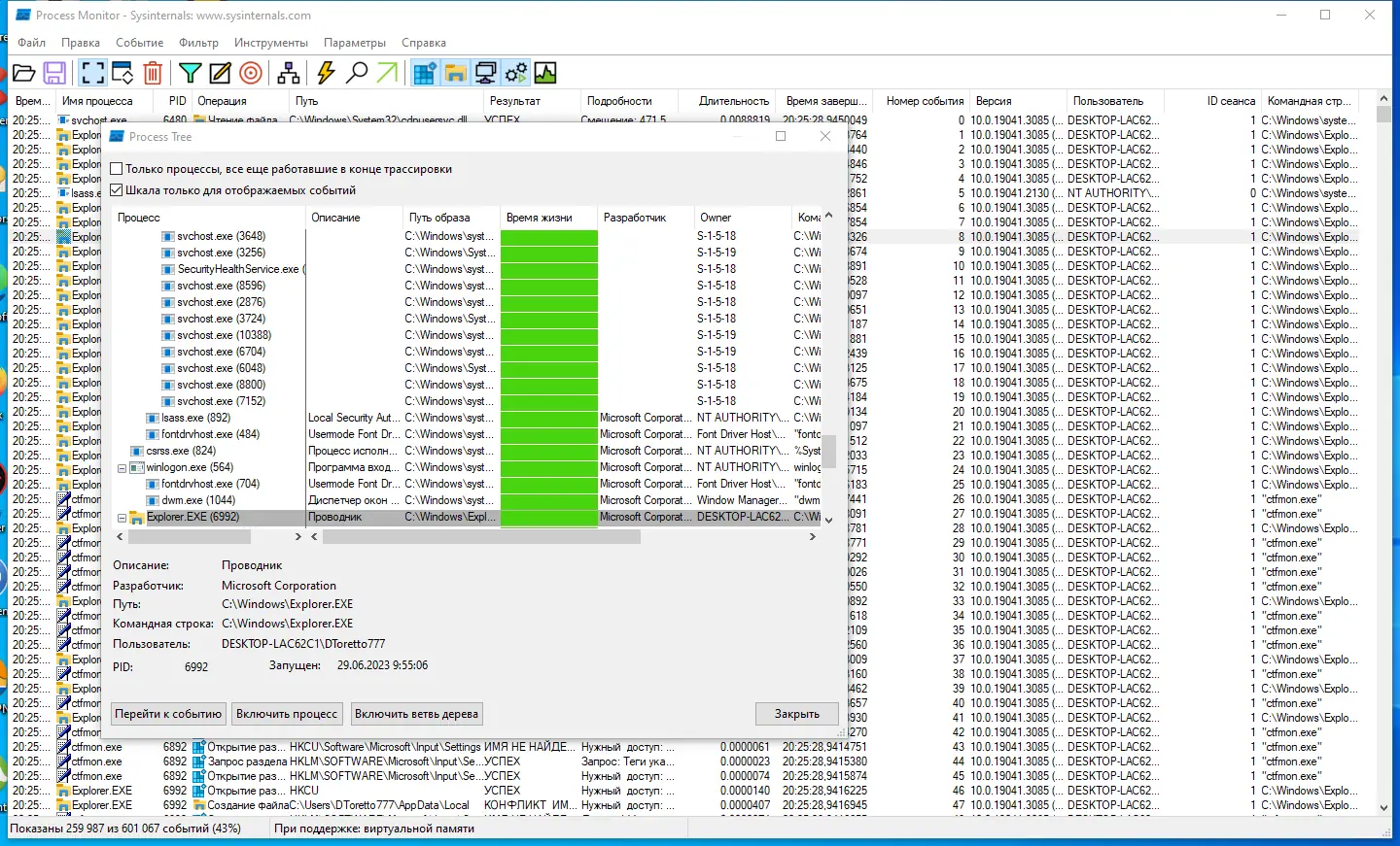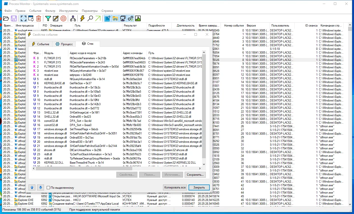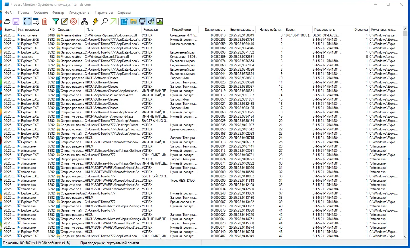 Эта программа представляет собой усовершенствованный отслеживающий инструмент, который отображает действия файловой системы, реестра, а также процессов и потоков. В ней реализованы функции, ранее доступные в Filemon и Regmon, а также многочисленные улучшения, включая расширенную фильтрацию, детальный сбор данных о событиях, идентификаторы сессий и имена пользователей. Process Monitor обеспечивает достоверную информацию о запущенных процессах, стек потоков со встроенной поддержкой всех операций и возможность одновременной записи журналов в файл. Эти уникальные возможности делают ее неотъемлемым инструментом для выявления ошибок, отслеживания активности вредоносных программ и проведения системной диагностики.